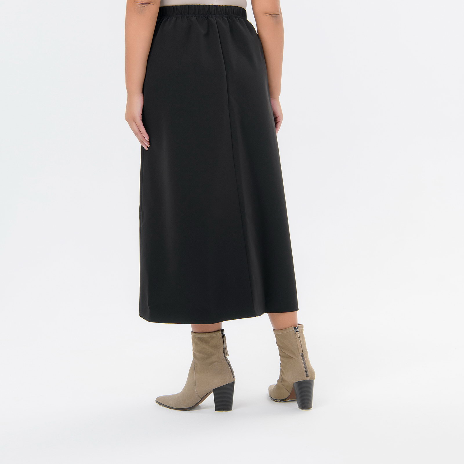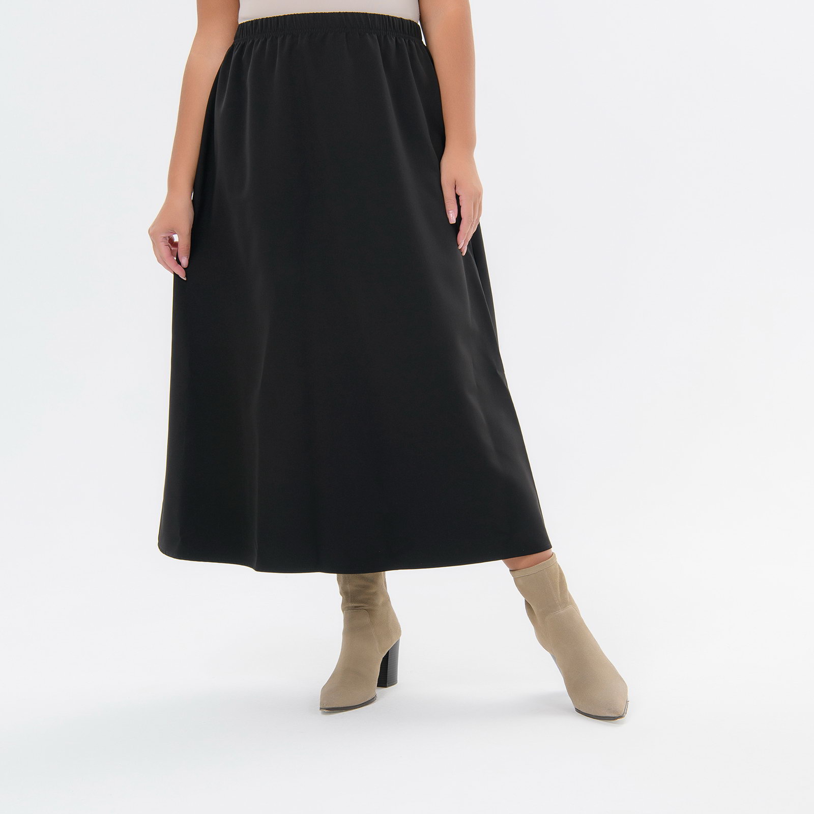 Юбка миди А-силуэта из костюмной ткани. Верх на широкой резинке.