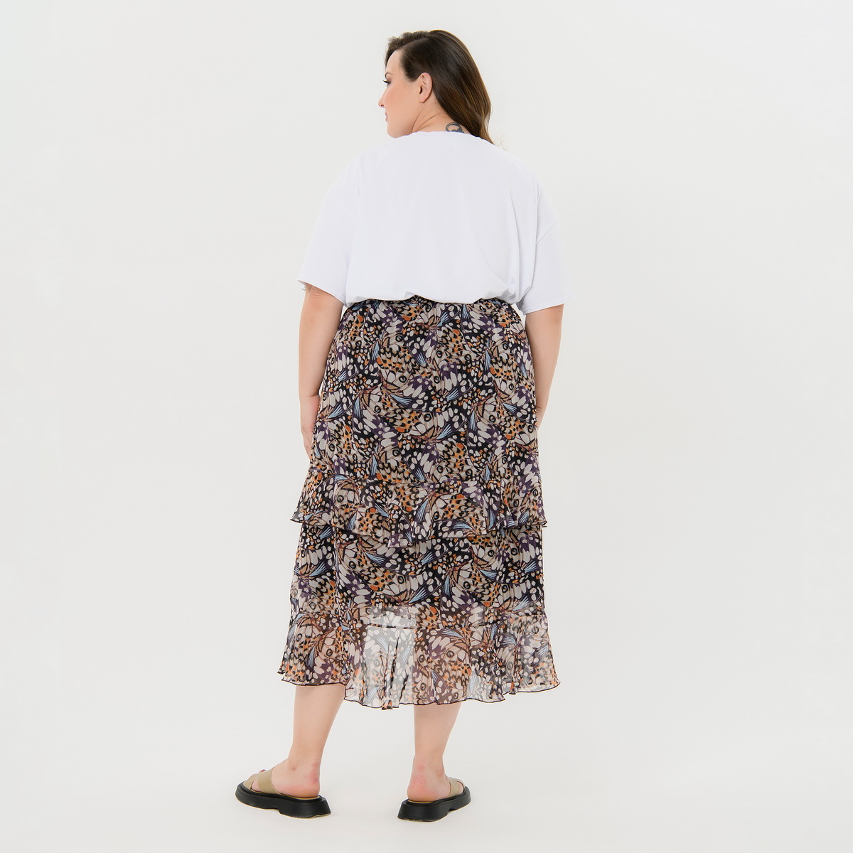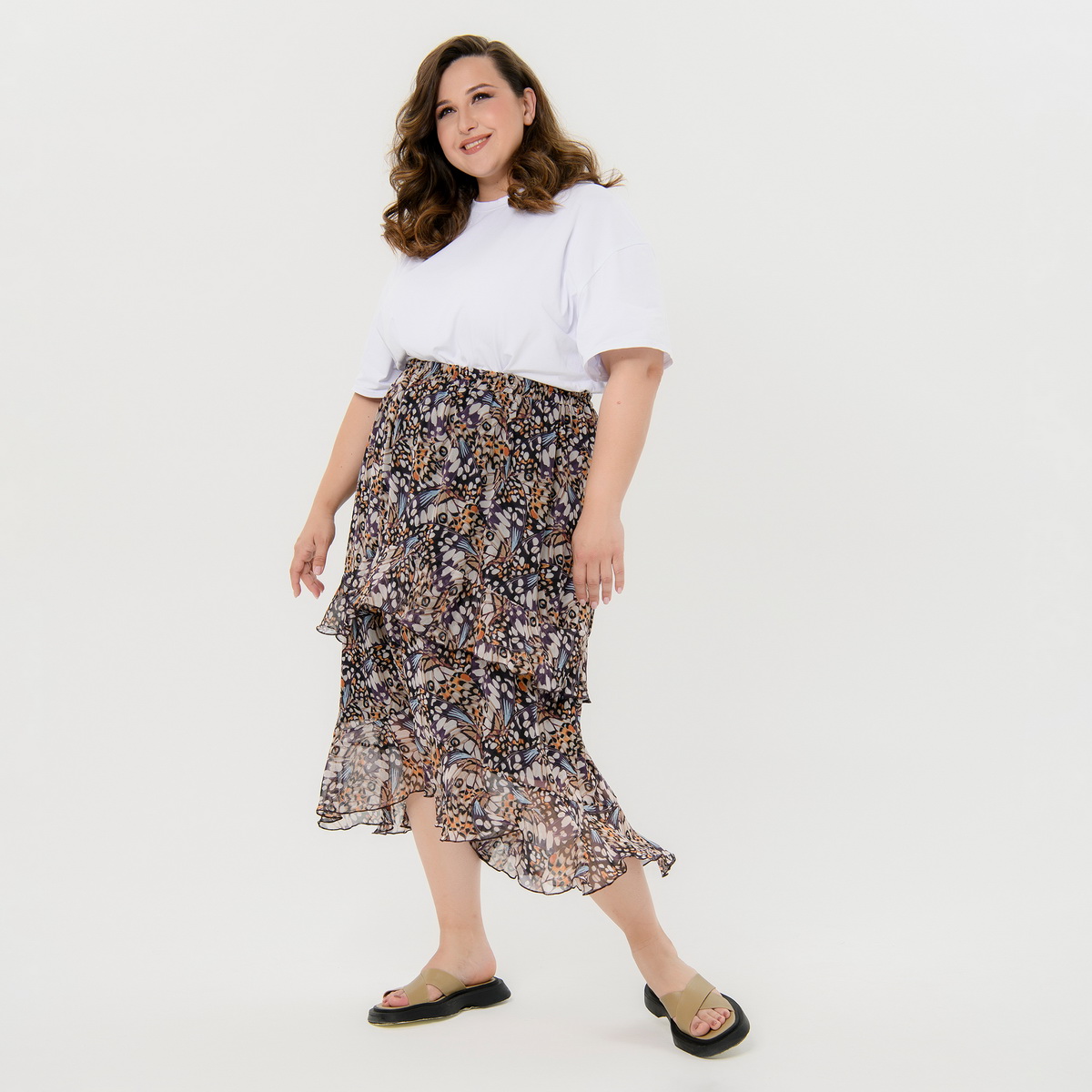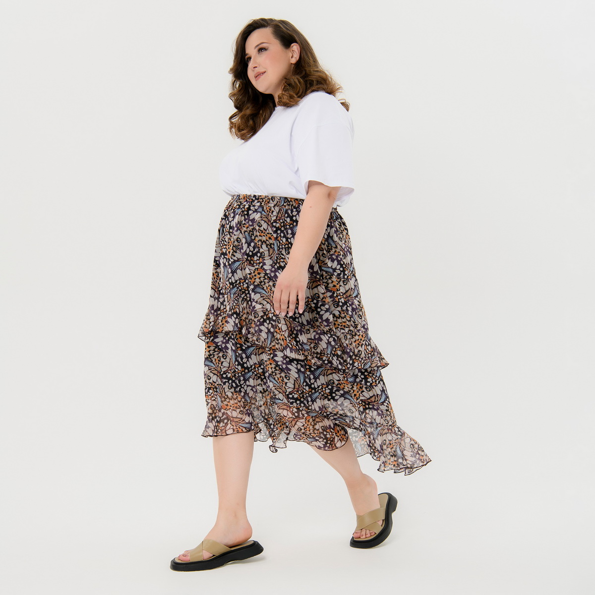 Юбка асимметричная с воланами, шифон, принт "крылья бабочки"