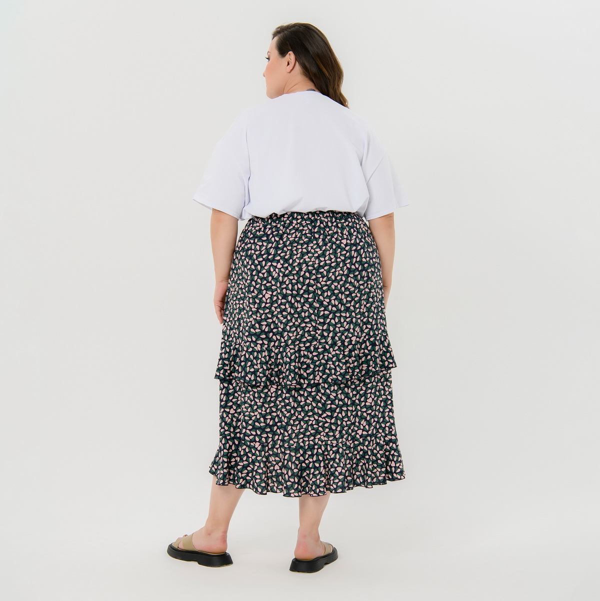 Ниже уровня бедер проходит подрез, в который вставлен волан.