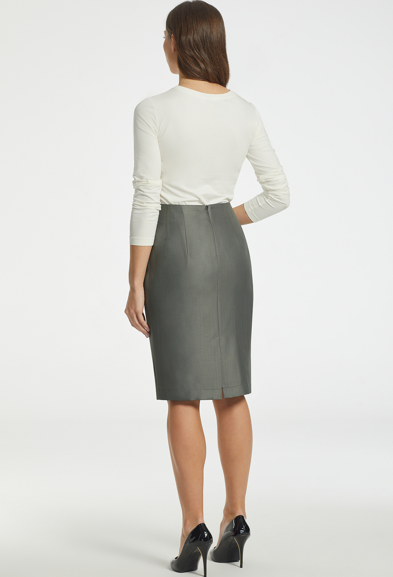 Юбка карандаш на обтачке, в среднем шве спинки обработана потайная молния и шлица, на подкладке.