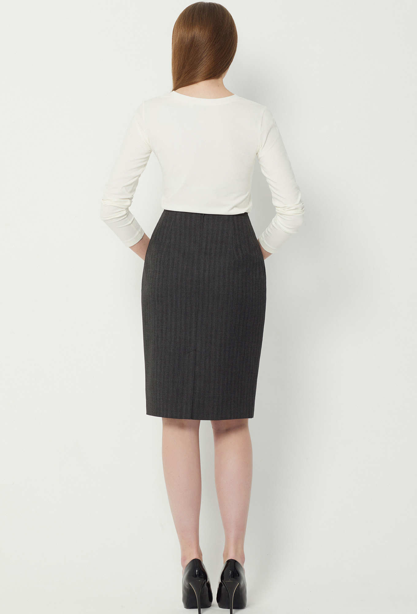 Юбка карандаш на обтачке, в среднем шве спинки обработана потайная молния и шлица, на подкладке.