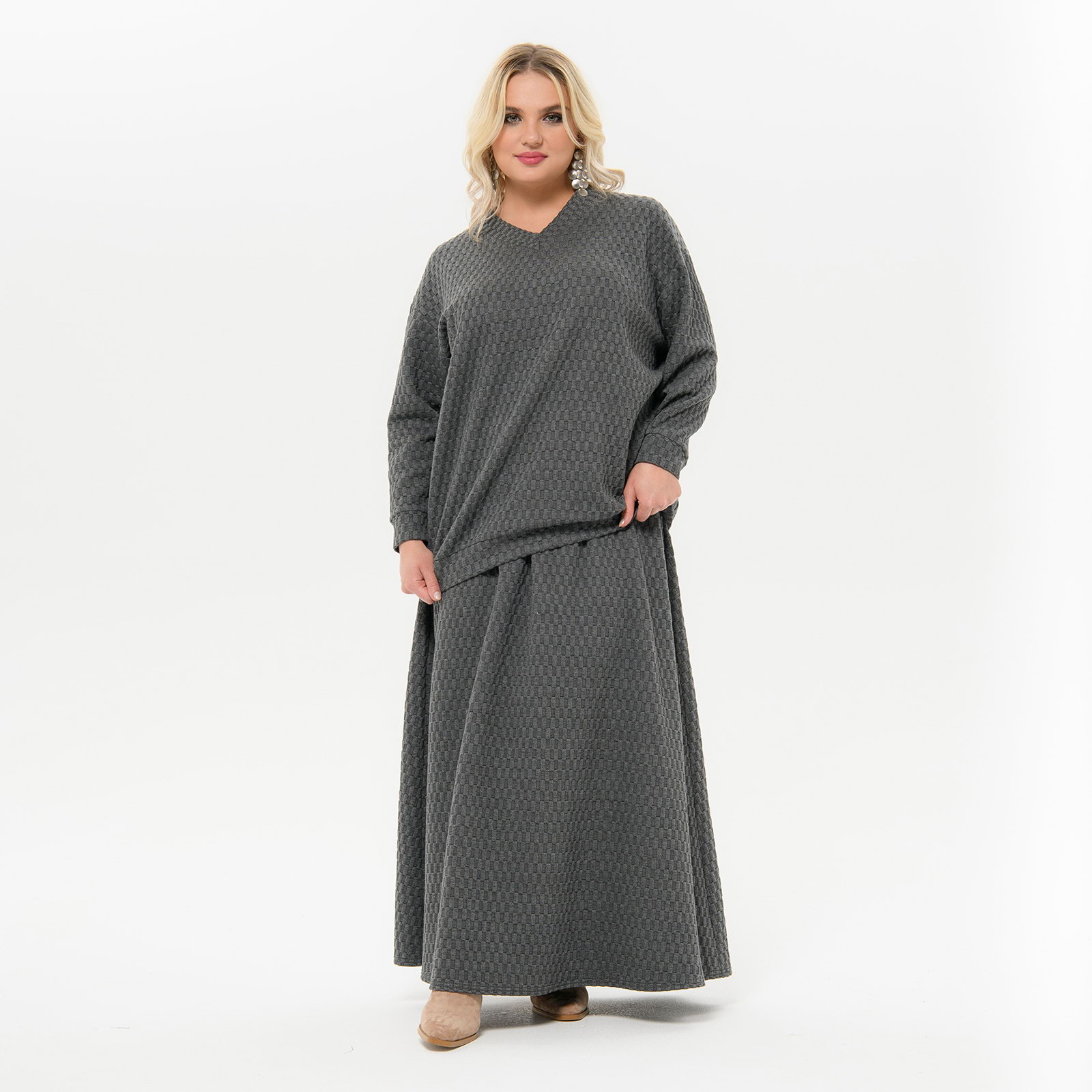 Юбка длинная из фактурного трикотажа, на подкладке, цвет серый