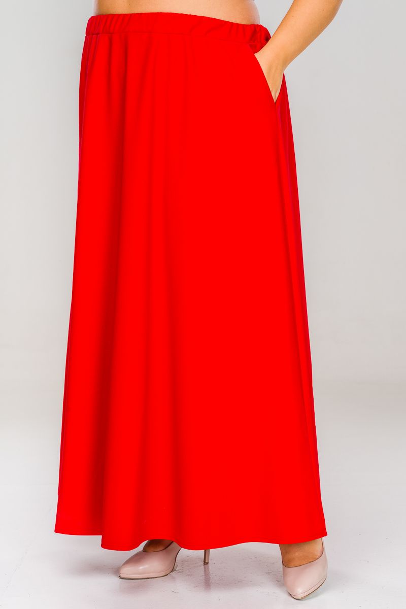 Однотонная расклешеная юбка из крепа с эластаном. Верх на широкой резинке, в боковых швах - карманы.