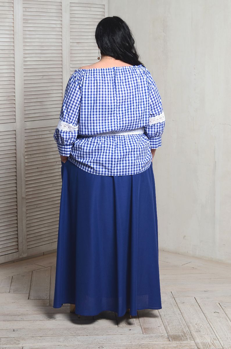 Однотонная расклешеная юбка из 100% вискозы. Верх на широкой резинке, в боковых швах - карманы.