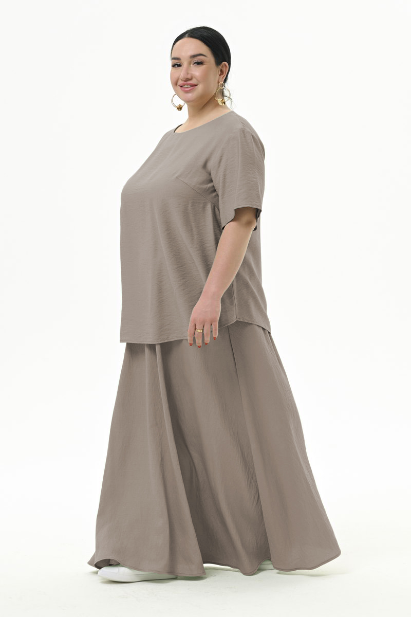 Юбка длинная расклешенная из плотной плательной вискозы. Верх на широкой резинке, в боковых швах - карманы.