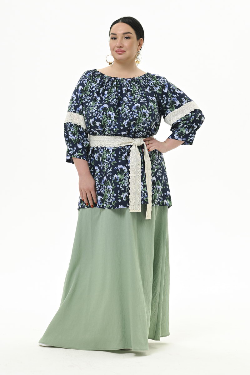 Юбка длинная расклешенная из плотной плательной вискозы. Верх на широкой резинке, в боковых швах - карманы.
