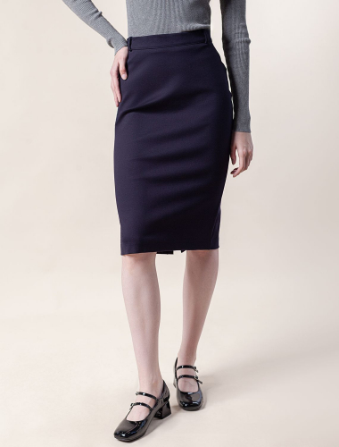 Юбка фактурной вязки выполнена из мягкой хлопковой пряжи с добавлением акрила. Изделие дополнено трикотажной подкладкой, в поясе вставлена эластичная резинка, что гарантирует абсолютный комфорт при носке. Сочетайте в костюме с жакетом D31.387 чтобы получить завершённый элегантный образ. голубой