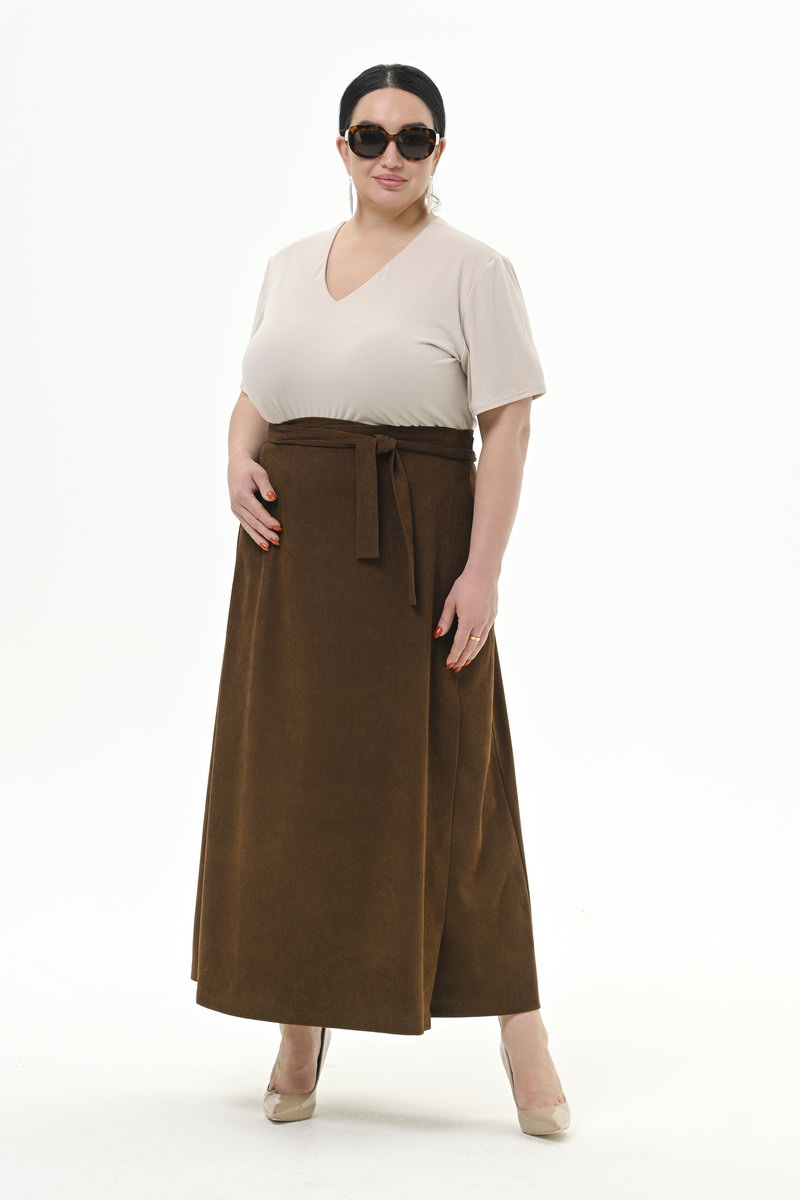 Юбка - "фартук" с запАхом из вельвета, цвет "молочный шоколад"