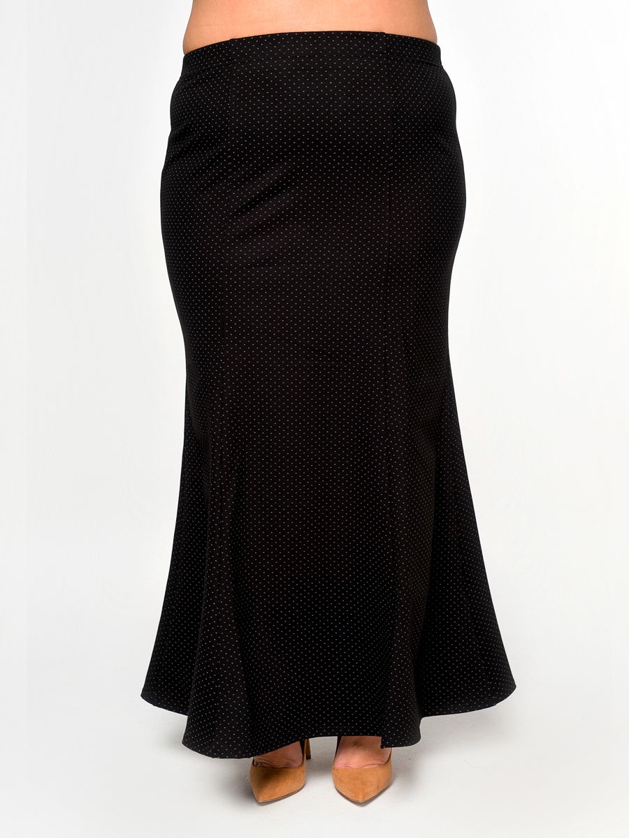 Длинная юбка ультрамодного силуэта из джерси. За счет клиньев, расширяющихся к низу, юбка зрительно вытягивает силуэт. Верх на широкой резинке, не стесняющей движение.