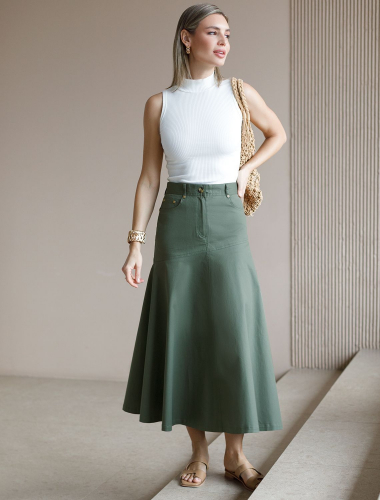 Юбка-годе из хлопка D26.198 светло-бежевый