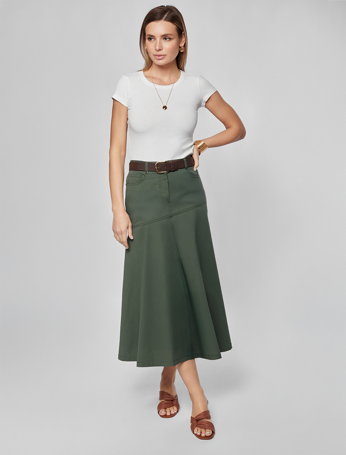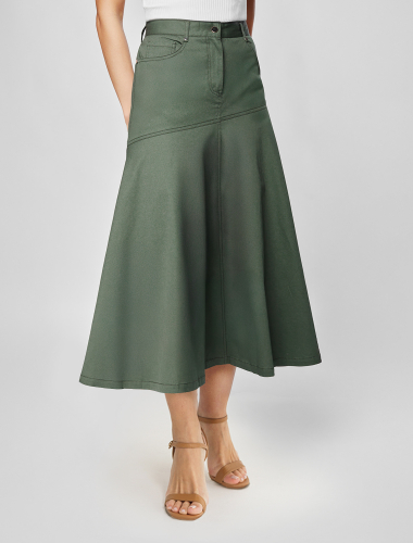 Юбка-годе из хлопка D26.198 темно-оливковый