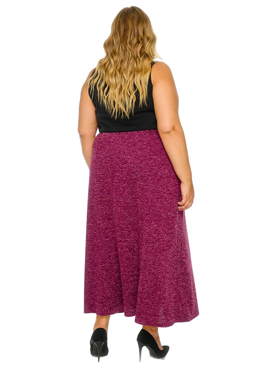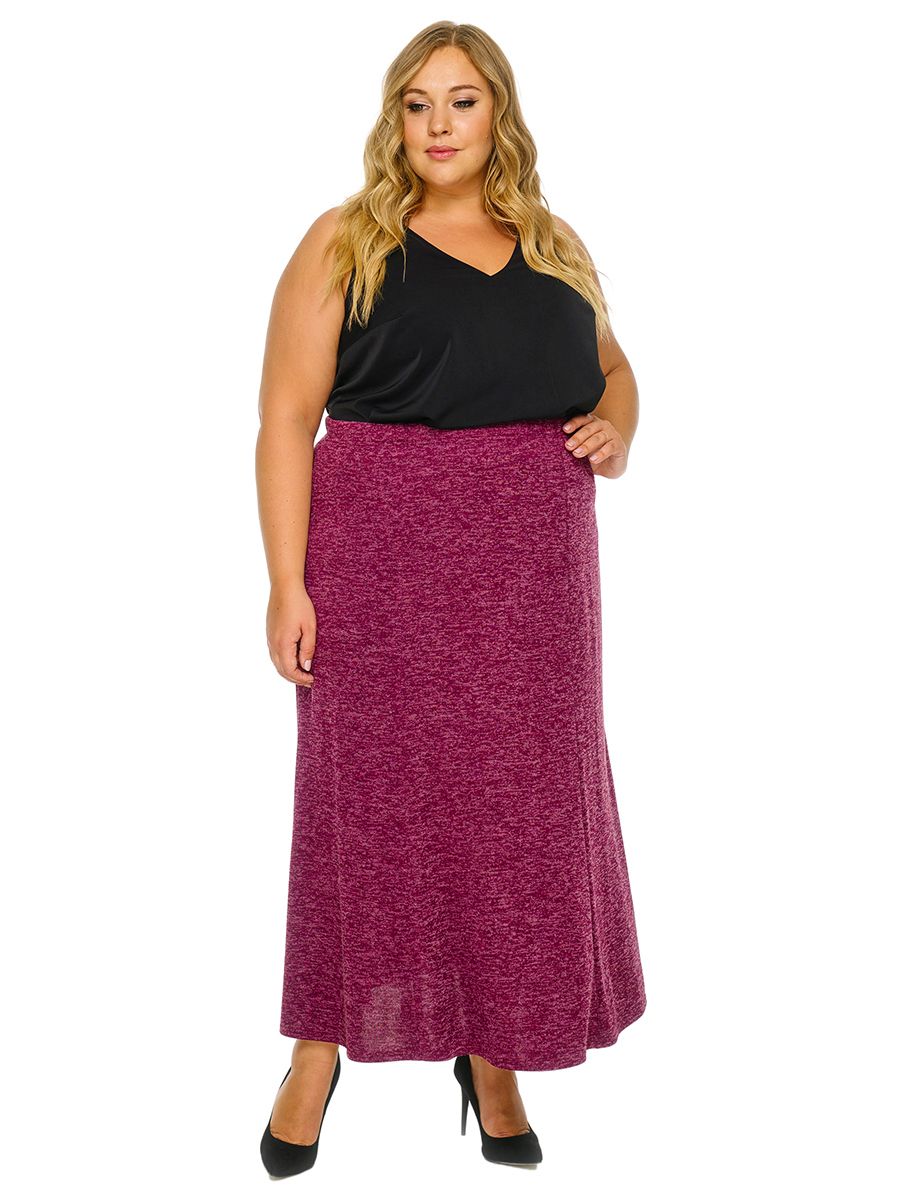 Длинная юбка силуэта годе из меланжевого джерси, на подкладке. За счет клиньев, расширяющихся к низу, юбка зрительно вытягивает силуэт. Верх на широкой резинке, не стесняющей движение.
