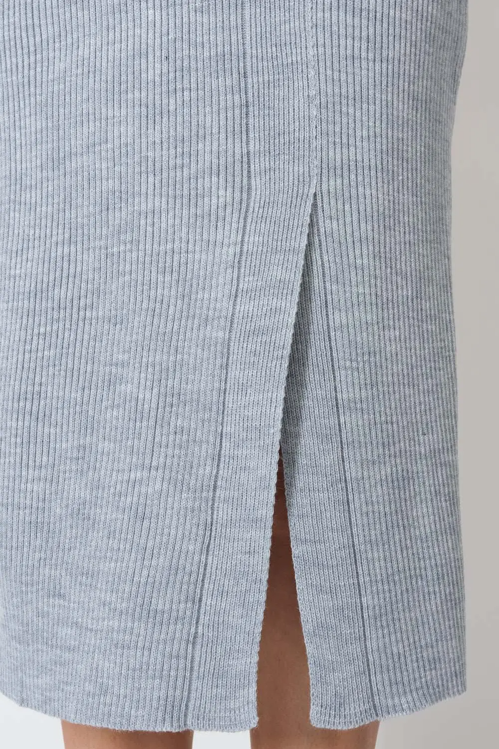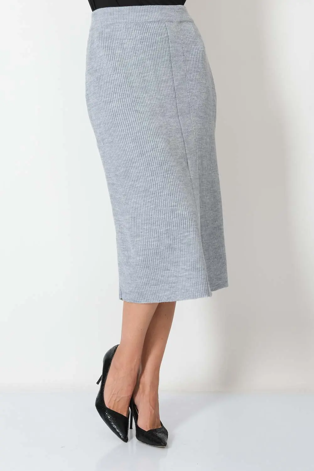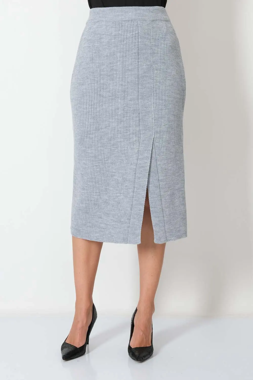 Классическая юбка полуприлегающего силуэта. В пояс горизонтально проложена эластичная резинка. На переднем полотне изделия элегантная шлица. серый