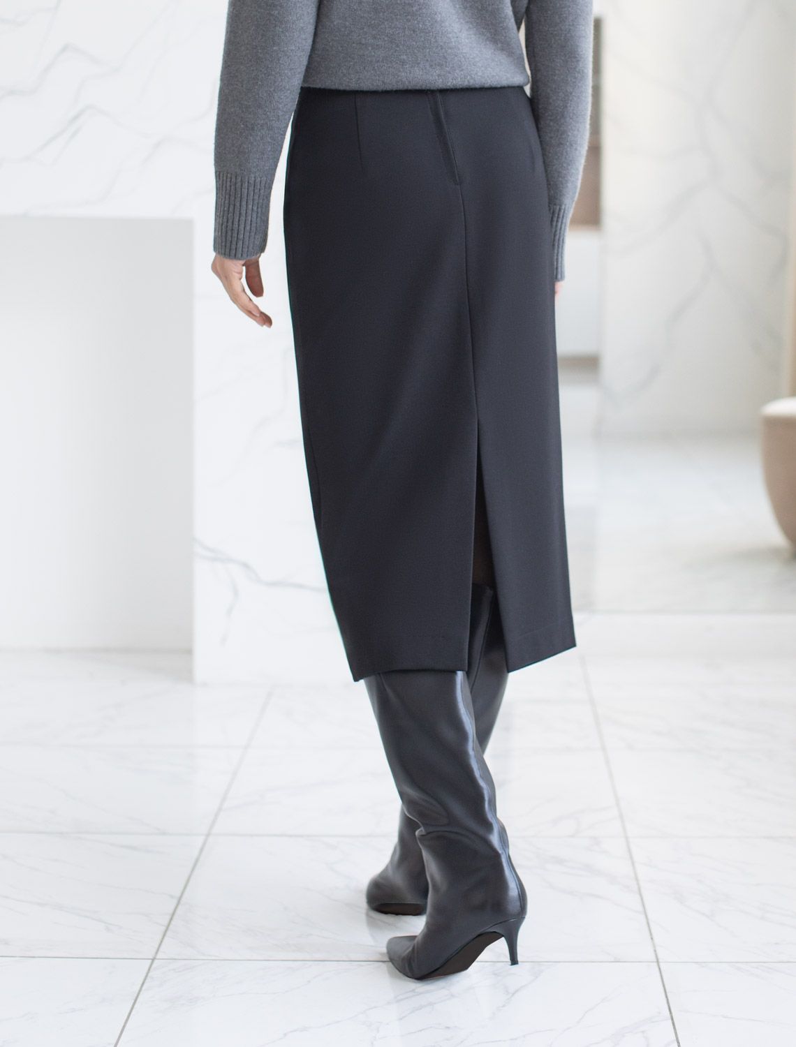 Юбка прямого кроя выполнена из джерси - плотность 400г/м2. Застежка на молнию и потайную пуговицу. Изделие дополнено высоким разрезом сзади и декоративным швом спереди. Изделие хорошо держит форму, отлично тянется и почти не мнется во время использования. Идеальный вариант в офис или в повседневный классический стиль.