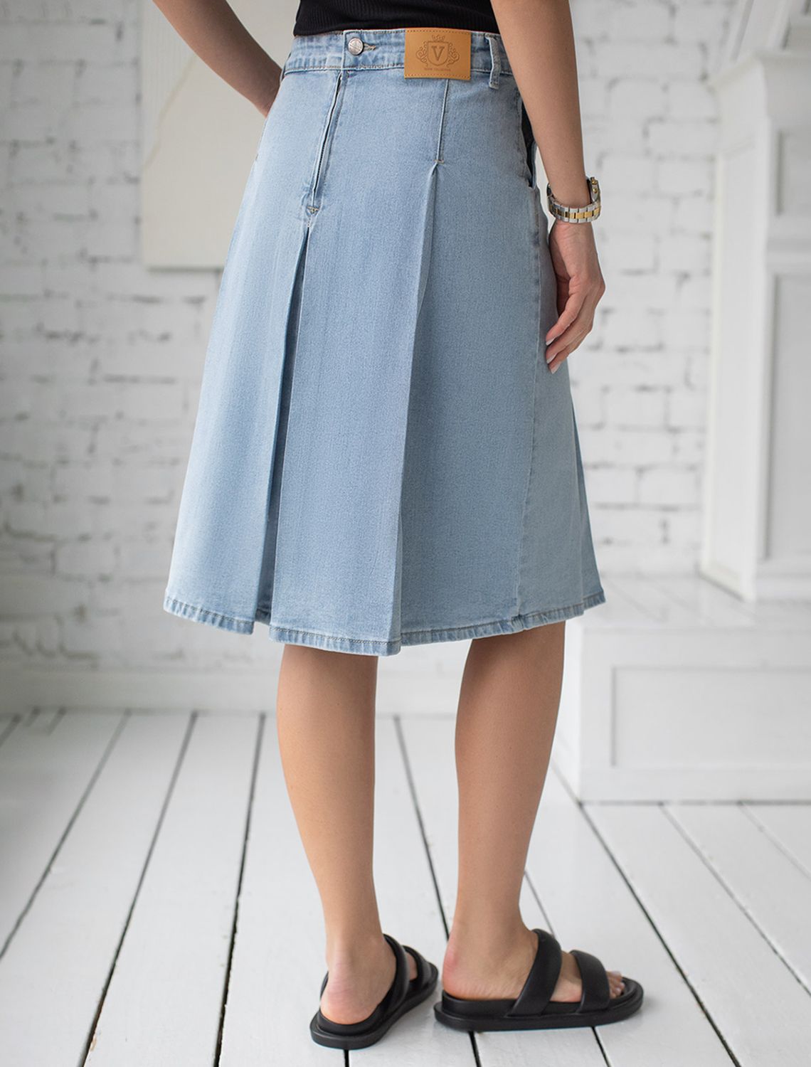 Юбка из эластичного денима D56.059 светло-голубой
