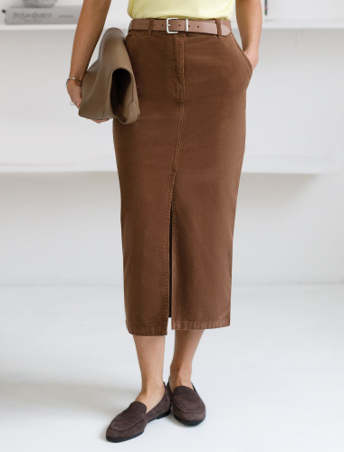 Юбка из эластичного микро-вельвета D26.189 светло-кофейный