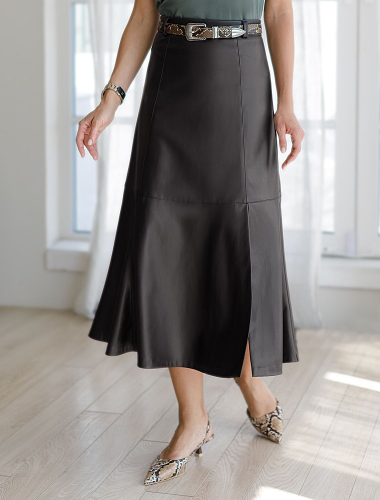 Прямая юбка с темно-серебристым металлизированным покрытием средней длины создает эффектный образ, визуально вытягивает силуэт и подчеркивает стройность фигуры. Разрез внизу придает дополнительную свободу движений и делает образ еще более привлекательным, а металлический мягкий блеск добавляет изящества и современности. Юбка отлично смотрится как на маленьких, так и на больших размерах благодаря продуманному крою и качественному эластичному материалу. Мягкая структура ткани обеспечивает комфорт даже при длительном ношени и приятные тактильные ощущения, сохраняет форму после стирок.