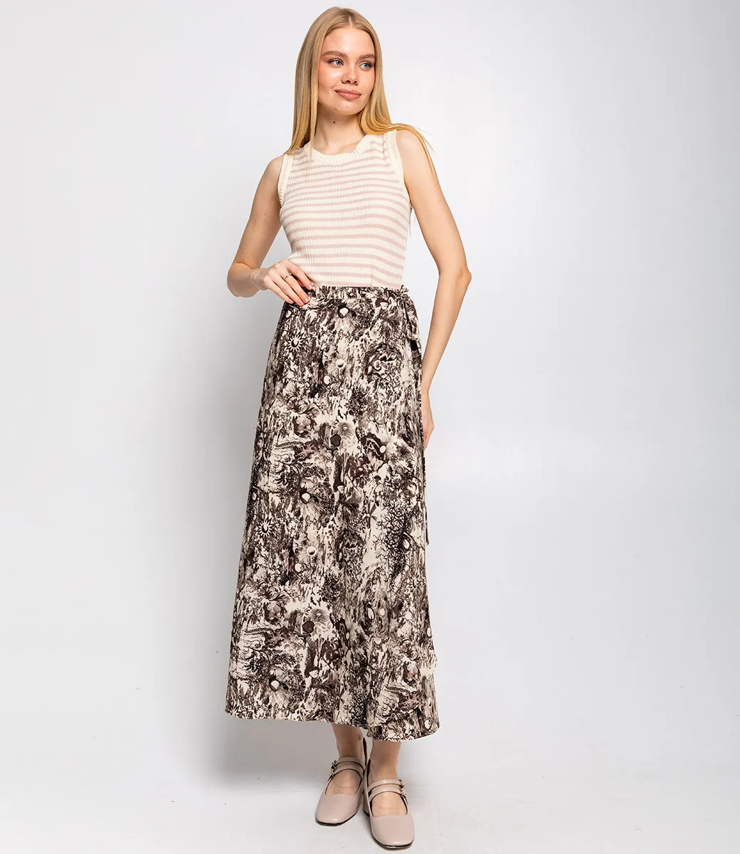 Юбка – это стильный элемент гардероба, который подчеркивает женственность и легкость каждой женщины. Юбка макси с А-силуэтом, который постепенно расширяется от линии талии вниз. Это позволяет юбке удобно облегать фигуру и создавать воздушный, свободный силуэт. Юбка украшена нежным цветочным узором в пастельных тонах, что придаёт изделию романтичный и женственный вид. Использованный для пошива материал - 65% полиэстер и 35% хлопок - обеспечивает легкость и воздухопроницаемость, что делает юбку прекрасным выбором на теплую погоду. Она может стать основой как повседневного, так и более нарядного образа, прекрасно сочетаясь с различными блузами или топами. Обратите внимание на универсальность этой модели, которая легко впишется в любой гардероб. Чтобы помочь вашим клиентам выбрать правильный размер, мы подготовили таблицу на сайте, где можно быстро произвести необходимые замеры и удостовериться в своем выборе. Установленная нами цена является доступной для качественного изделия такого класса. Рост модели 173, 84-58-89.
