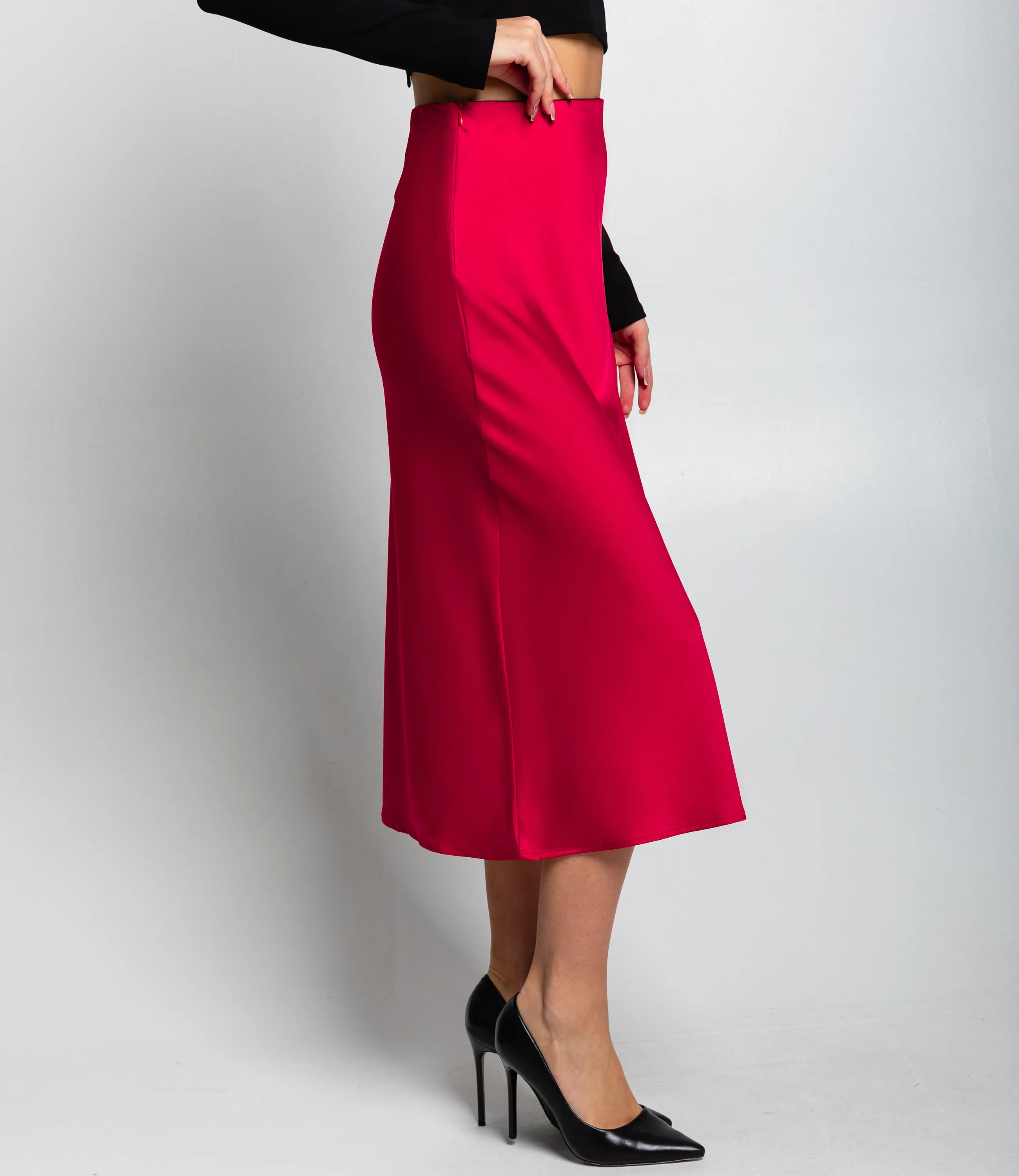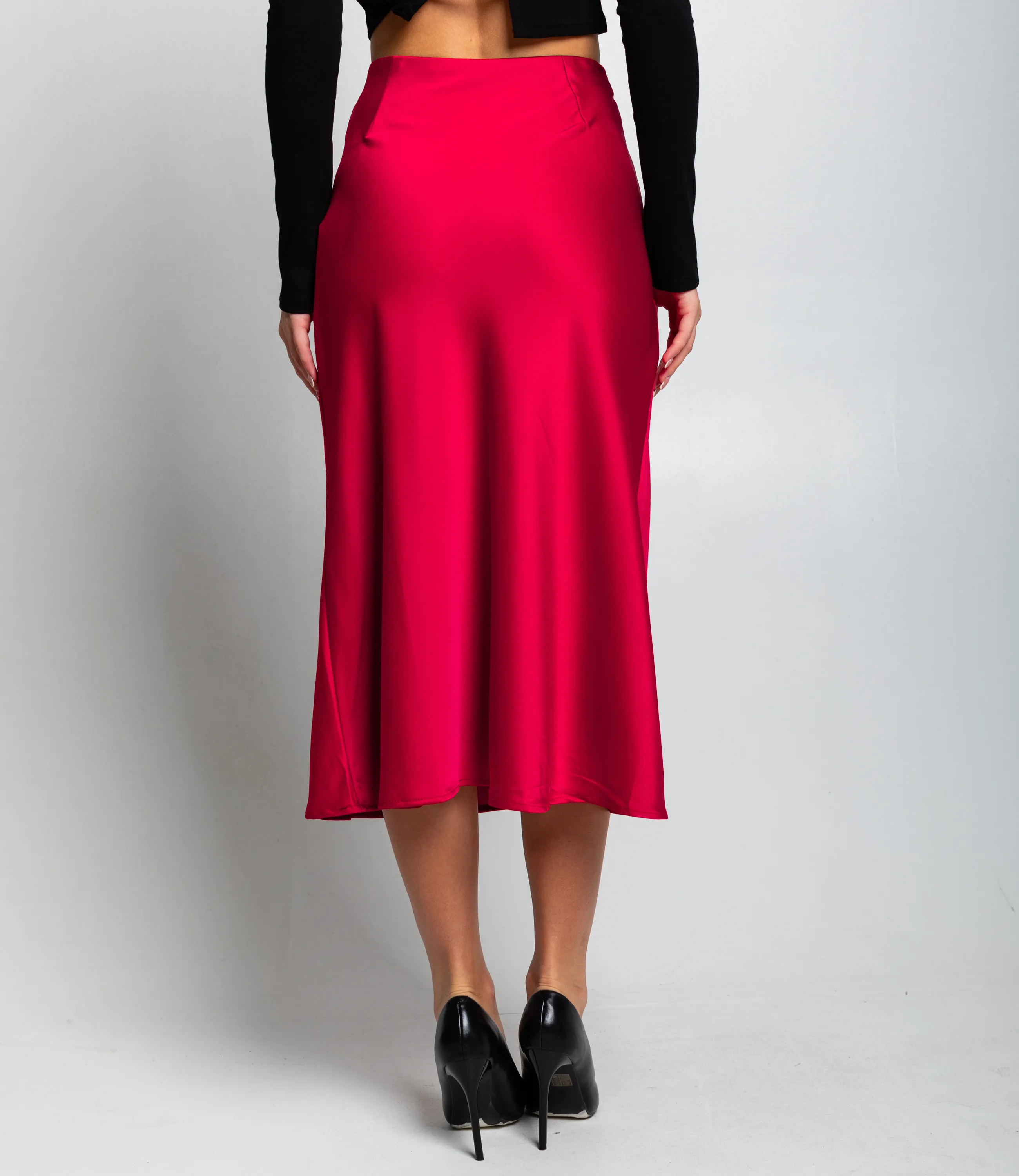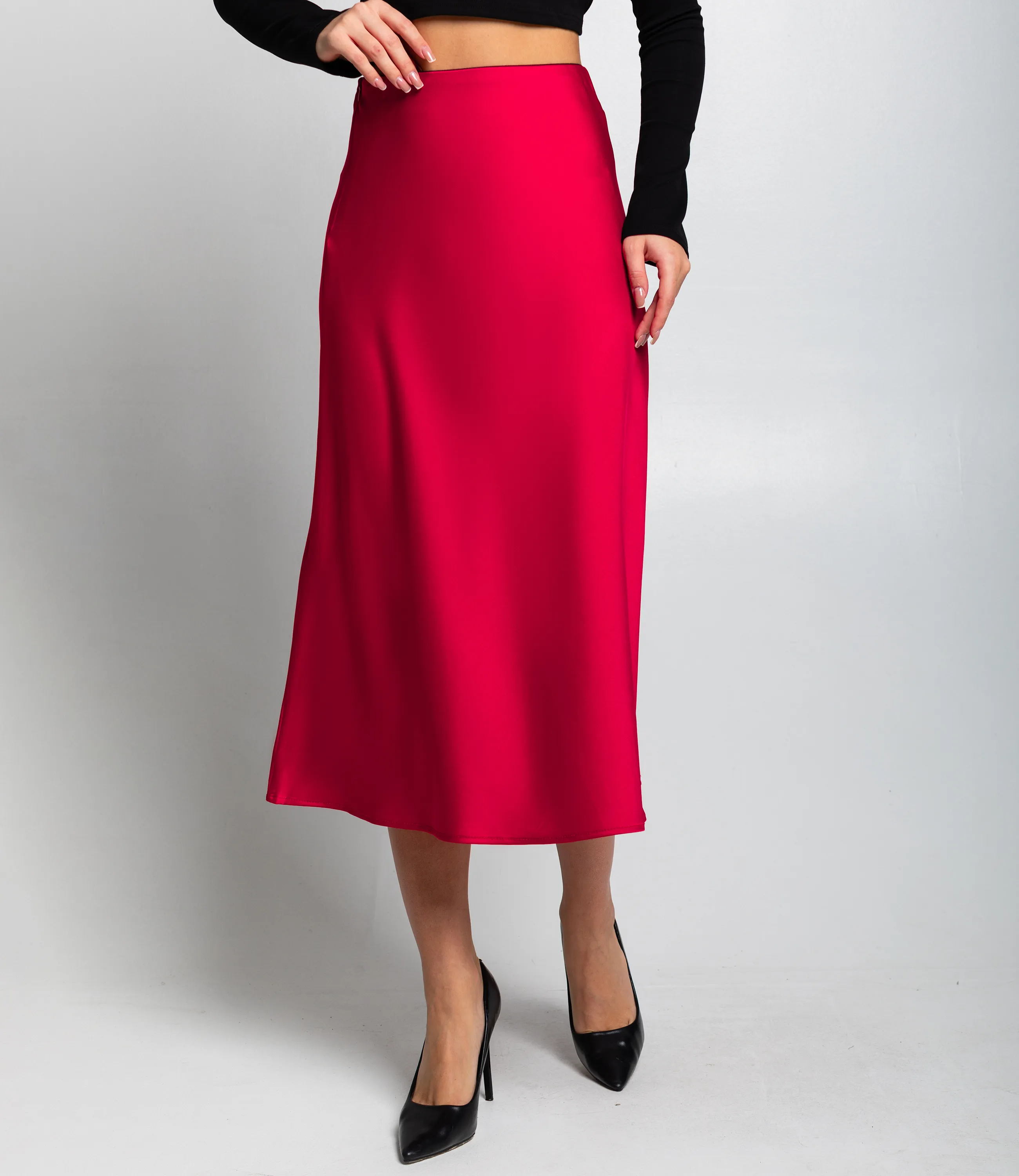 Юбка из атласа позволят сиять на торжественных мероприятиях. Гладкая материя с незаметным переплетением нитей подчеркивает красоту женского тела.
