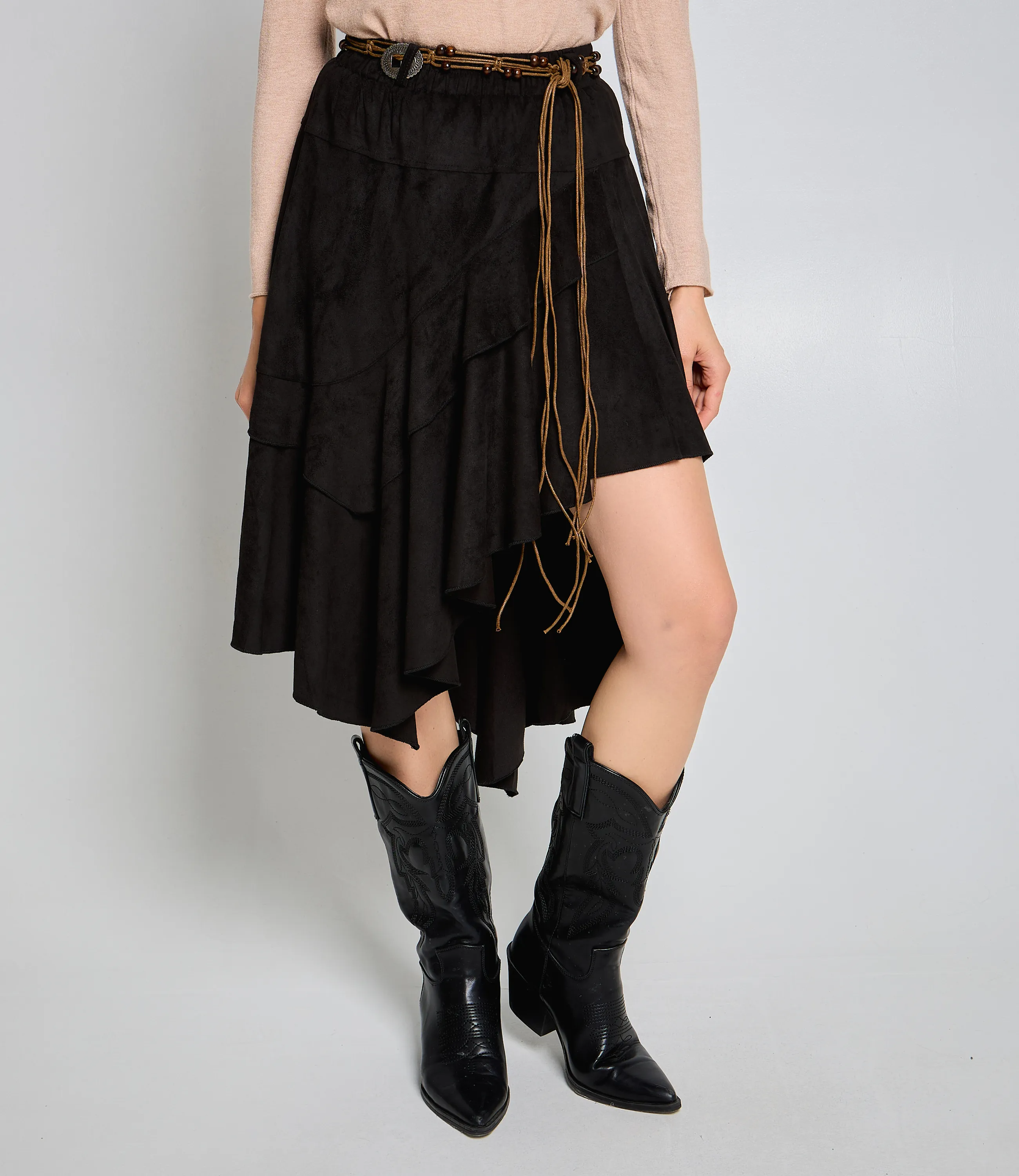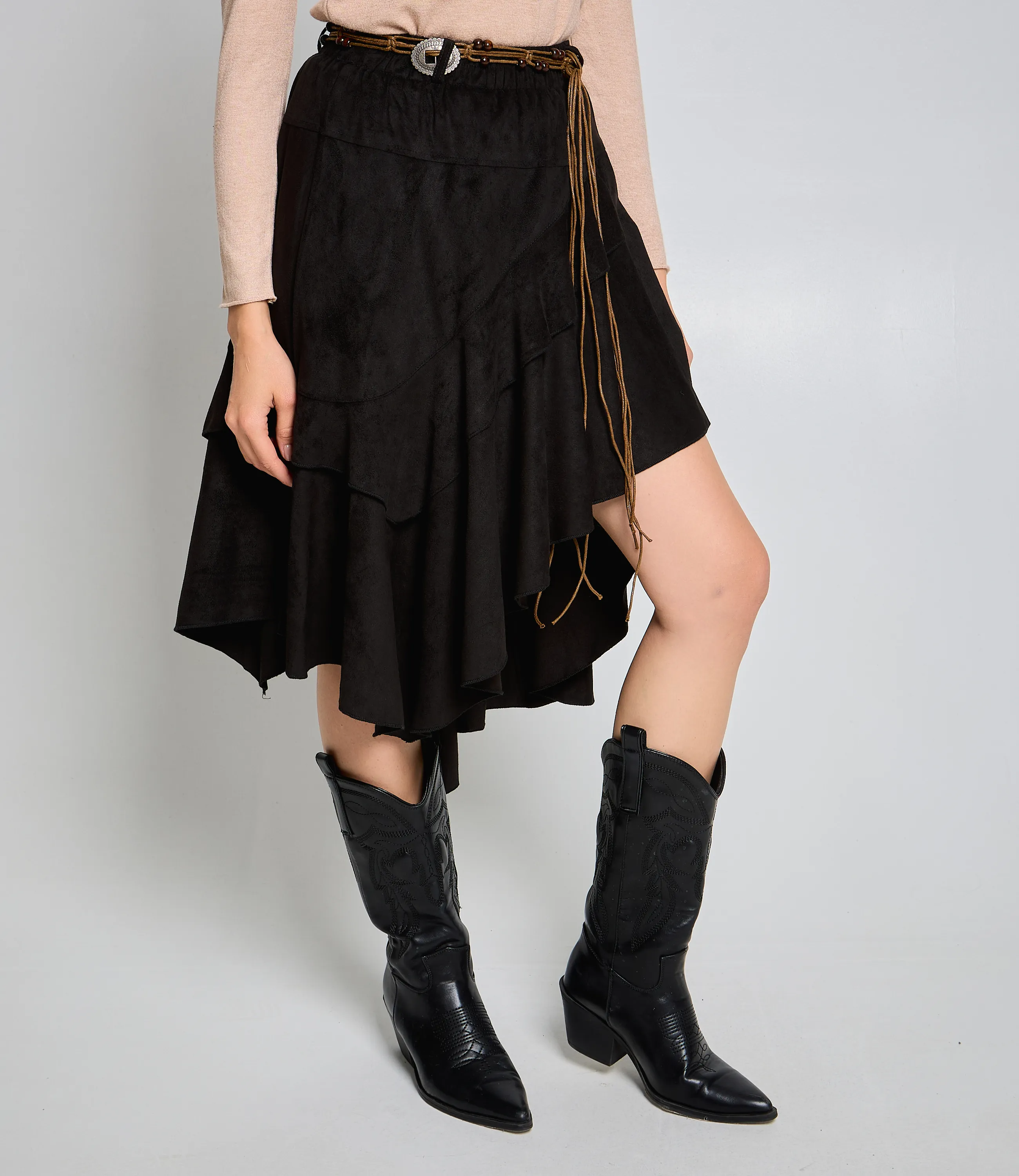 Эта юбка — идеальный элемент гардероба, который привлечет внимание ваших покупателей и добавит изысканности в их образы. Выполненная из 90% полиэстер, 5% эластан. Юбка асимметричная миди с укороченной правой и удлинённой левой стороной, расклешённого силуэта с лёгкими складками. Декорирована несколькими горизонтальными ярусами-воланами, что добавляет фактурности и романтичности; подол асимметричный. Качество исполнения и современный дизайн делают эту юбку желанным элементом гардероба для девушек, которые ценят стиль и комфорт. На странице сайта представлена таблица размеров, что упростит покупку для клиентов, помогая им выбрать идеальный размер без лишних трудностей. Установленная цена делает эту юбку доступной, что способствует её популярности среди покупателей. Рост 168 см, 85-63-92.