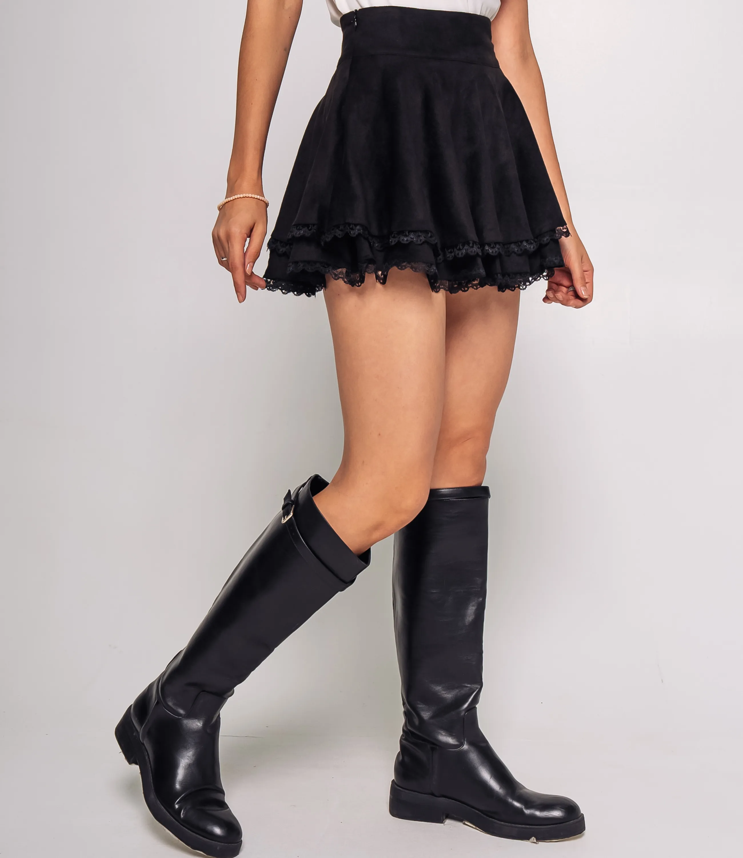 Эта юбка — идеальный элемент гардероба, который привлечет внимание ваших покупателей и добавит изысканности в их образы. Выполненная из 95% полиэстер и 5% эластан. Крой — расширяющийся книзу, с заниженной линией талии и широким поясом, обеспечивающим аккуратную посадку по бёдрам. Длина — выше колена, свободный силуэт придаёт эффект лёгкого раздвоения складок при движении. Низ изделия отделан узкой кружевной оборкой, добавляющей женственный и декоративный акцент, шов отделки аккуратно пришит по всей окружности. На странице сайта представлена таблица размеров, что упростит покупку для клиентов, помогая им выбрать идеальный размер без лишних трудностей. Установленная цена делает эту юбку доступной, что способствует её популярности среди покупателей. Рост модели 164 см., 83-61-89. Вы можете заказать онлайн презентацию на интересующие Вас модели. Наши менеджеры свяжутся с Вами и проведут индивидуальную видеотрансляцию, помогут составить заказ и ответят на Ваши вопросы.