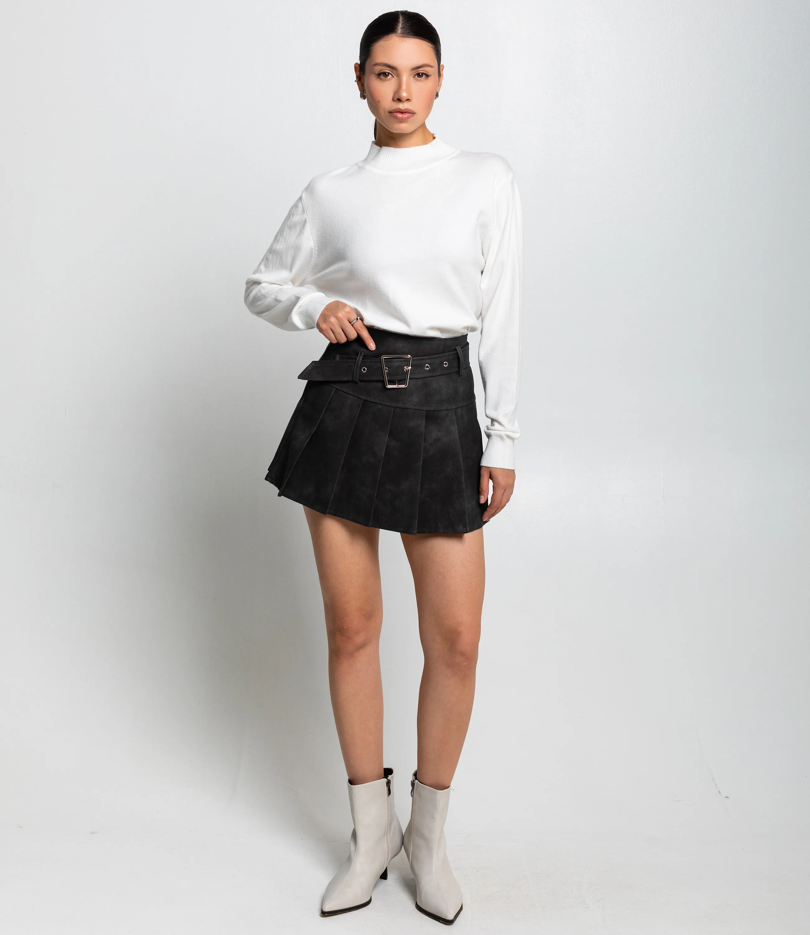 Эта юбка — идеальный элемент гардероба, который привлечет внимание ваших покупателей и добавит изысканности в их образы. Выполненная из 82,7% вискозы и 17,3% полиэстера, она обладает гладкой текстурой и шелковистым блеском, что придает ей особый шарм и элегантность.Короткая юбка мини с высокой посадкой, прилегающая в талии и расширяющаяся внизу за счёт широких складок. Длина чуть выше середины бедра, создаёт визуально удлинённые ноги. Модель с множеством равномерных вертикальных складок (плиссе-панели), отходящих от пояса вниз, придающих структуру и объём. Передняя и задняя части состоят из отдельных клиньев, соединённых швами с чёткой геометрией. Линия талии усилена цельнокроеным или притачным поясом. Качество исполнения и современный дизайн делают эту юбку желанным элементом гардероба для девушек, которые ценят стиль и комфорт. На странице сайта представлена таблица размеров, что упростит покупку для клиентов, помогая им выбрать идеальный размер без лишних трудностей. Установленная цена делает эту юбку доступной, что способствует её популярности среди покупателей. Рост 164 см, 83-61-89.
