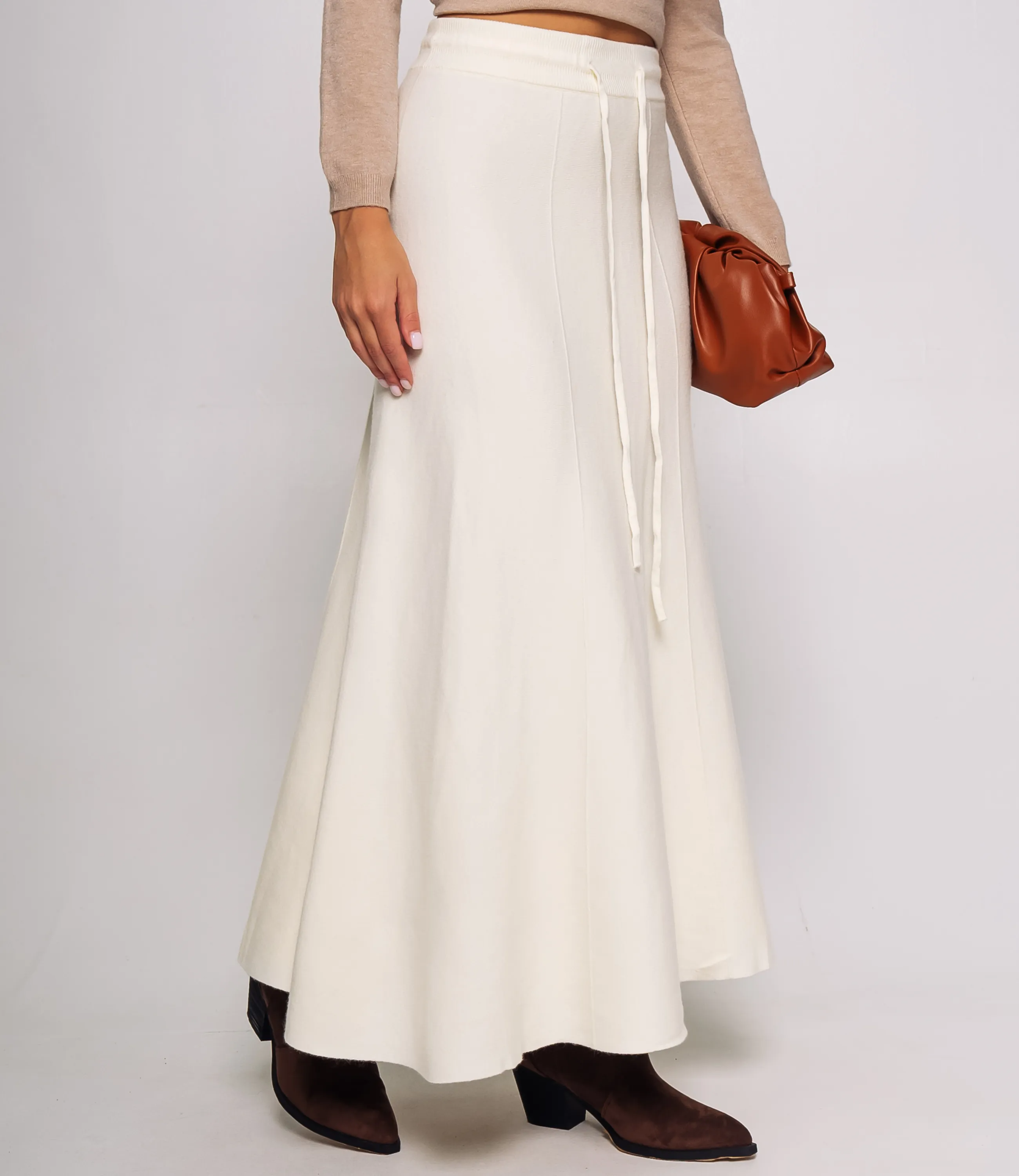 Эта юбка — идеальный элемент гардероба, который привлечет внимание ваших покупателей и добавит изысканности в их образы. Выполненная из 50% вискоза, 30% полиэстер и 20% нейлон.Юбка макси длины с высокой талией и широким эластичным поясом, дополненным длинными тонкими шнурками для регулировки посадки; силуэт трапециевидный, плавно расширяющийся книзу, образующий мягкие вертикальные клины и аккуратные долевые складки. На странице сайта представлена таблица размеров, что упростит покупку для клиентов, помогая им выбрать идеальный размер без лишних трудностей. Установленная цена делает эту юбку доступной, что способствует её популярности среди покупателей. Рост модели 168 см., 89-63-90