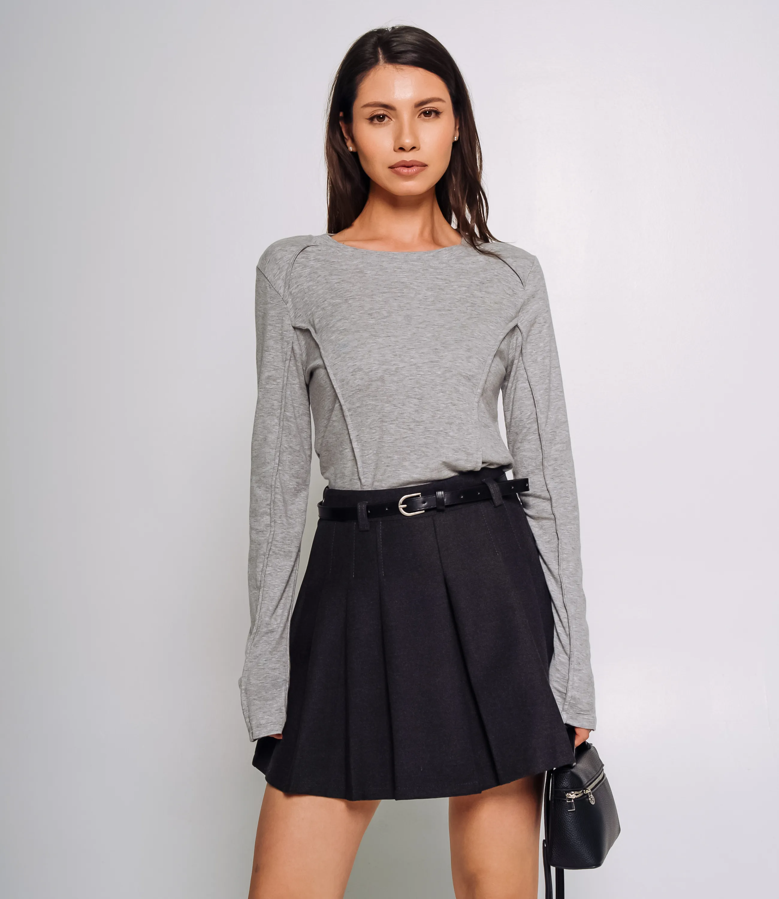 Эта юбка — идеальный элемент гардероба, который привлечет внимание ваших покупателей и добавит изысканности в их образы. Для изготовления юбки использованы качественные материалы: 65% хлопок и 35% полиэстер, что гарантирует долговечность и отличное состояние даже после многочисленных стирок. Короткая юбка с трапециевидным, слегка расклешённым силуэтом, сидящая на талии и подчёркнутая узким стачным поясом с петлями для ремня и тонким ремнём с овальной металлической пряжкой; передняя часть украшена центральной прокладной складкой, а по всему кругу расположены равномерные крупные складки, придающие объём и чёткую структуру, без видимых карманов и декоративных швов. Рост модели 164, 83-61-89. Вы можете заказать онлайн презентацию на интересующие Вас модели. Наши менеджеры свяжутся с Вами и проведут индивидуальную видеотрансляцию, помогут составить заказ и ответят на Ваши вопросы.