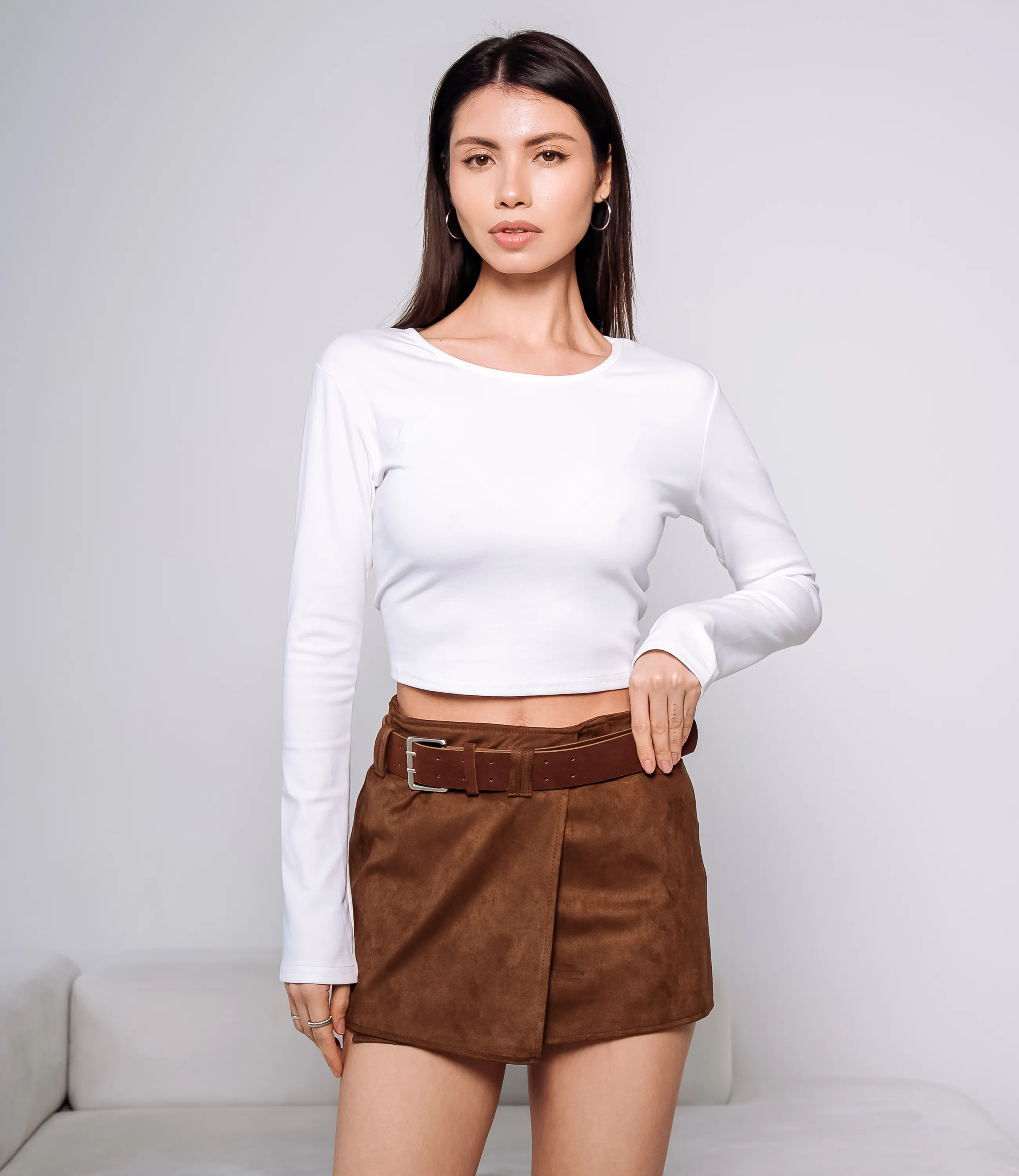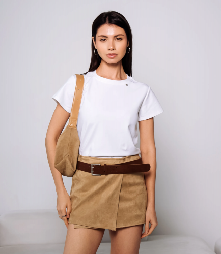Юбка — это часть гардероба, которая подчёркивает женственность и привлекательность любой женщины. Юбка короткой мини-длины, прямого кроя, украшенная широким поясом с пряжкой; передняя деталь имитирует запах с прямой контурной линией, швы аккуратно прострочены, низ обработан ровным подгибом. Юбка с запахом. Для пошива использован материал: 100% полиэстер. Такая ткань отличается прочностью, лёгкостью и простотой в уходе; она хорошо держит форму и сохраняет презентабельный вид даже после многократных стирок при соблюдении рекомендаций по уходу. Цвета глубокие и насыщенные, полностью соответствуют фотографиям на странице, что важно при комплектовании витрин и формировании коллекций. На сайте представлена таблица размеров — с её помощью вы сможете самостоятельно снять мерки и подобрать подходящие размеры для ваших покупательниц. Для оптовых покупателей мы предлагаем выгодные условия сотрудничества, гибкую ценовую политику и надёжные поставки для магазинов. Установленная цена адекватна и позволит вам формировать привлекательную наценку и обеспечивать высокую оборотность. Предложите своим клиенткам юбку, сочетающую стиль, удобство и простоту ухода. Рост модели 164 см., 83-61-89.