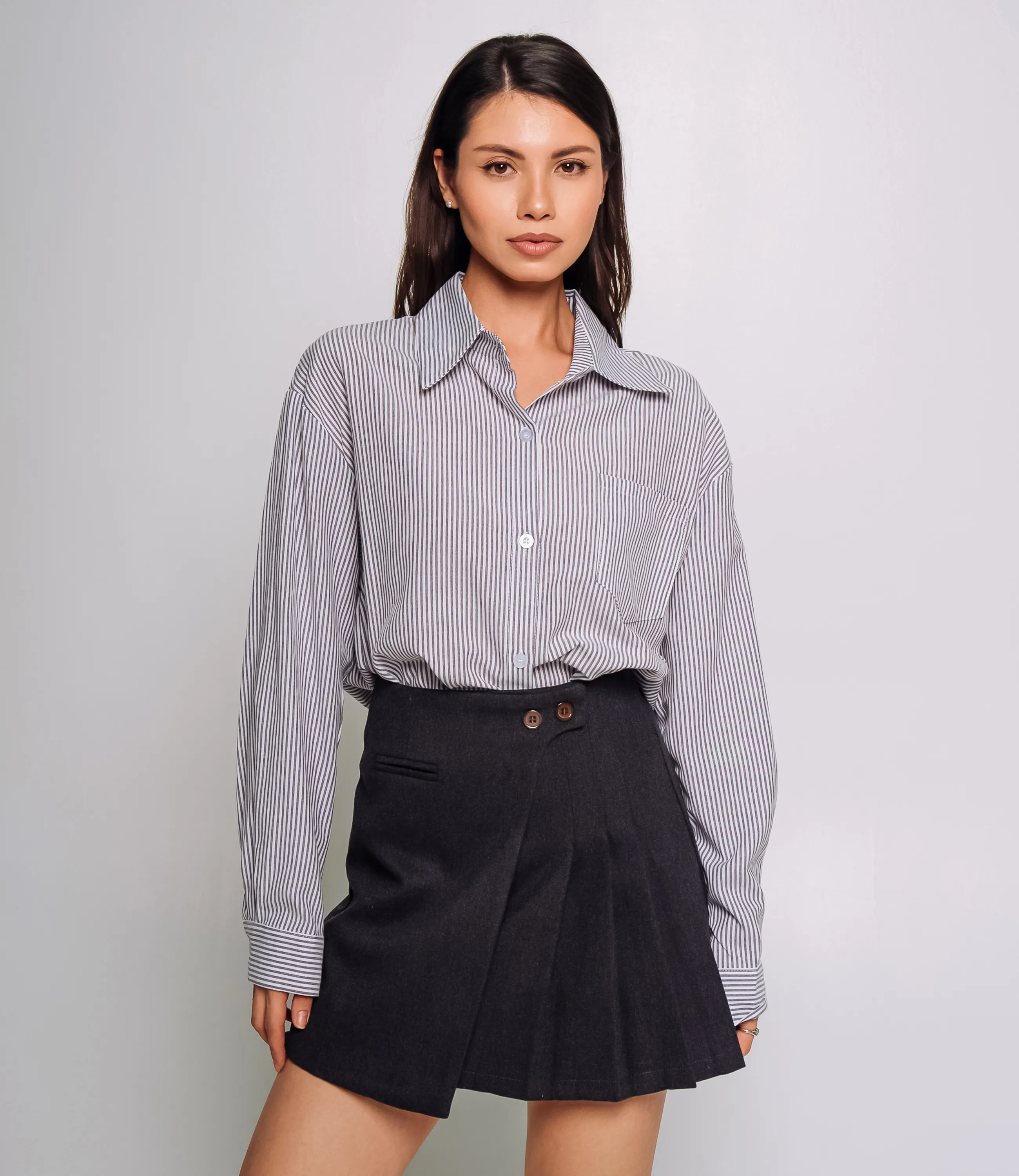 Эта юбка — идеальный элемент гардероба, который привлечет внимание ваших покупателей и добавит изысканности в их образы. Для изготовления юбки использованы качественные материалы: 80% хлопок и 20% полиэстер, что гарантирует долговечность и отличное состояние даже после многочисленных стирок.Юбка короткая, с трапециевидным силуэтом — прилегает в талии и верхней части бёдер и слегка расширяется к подолу, длина — несколько сантиметров выше середины бедра. Пояс средней ширины, с двумя видимыми пуговицами и частично перекрывающей передней планкой; внутренняя фиксация скорее всего молния или крючок. Передняя часть оформлена асимметричной накладной панелью, которая перекрывает центральную вставку с аккуратными широкими защипами, придающими объём и пластичную форму. Рост модели 164, 83-61-89. Вы можете заказать онлайн презентацию на интересующие Вас модели. Наши менеджеры свяжутся с Вами и проведут индивидуальную видеотрансляцию, помогут составить заказ и ответят на Ваши вопросы.