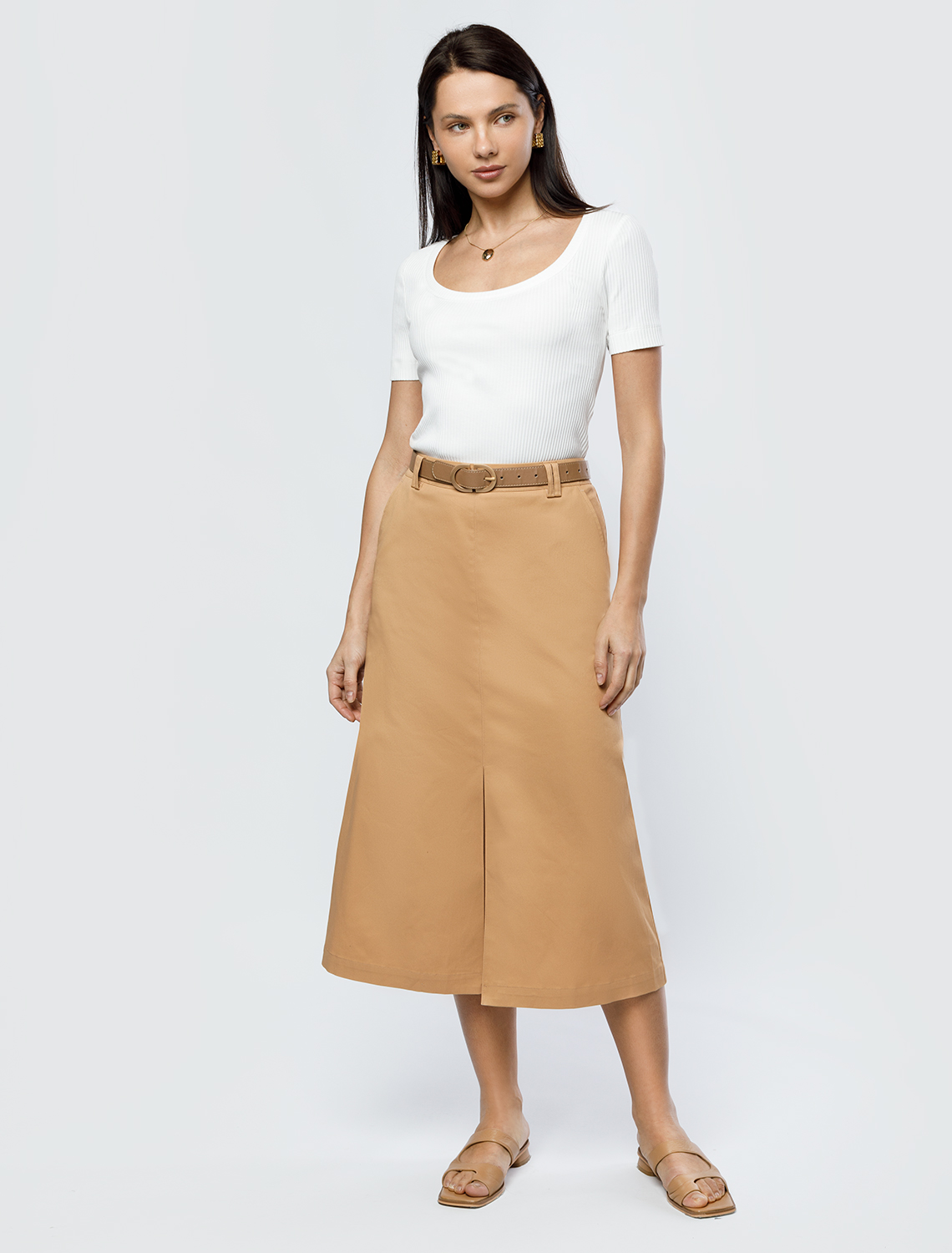 Юбка-миди из хлопка с разрезом D26.182 темно-бежевый