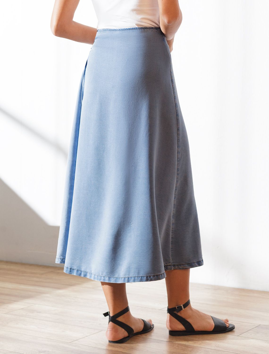 Юбка миди на запах А-силуэта из джинсового лиоцелла D56.127 светло-голубой