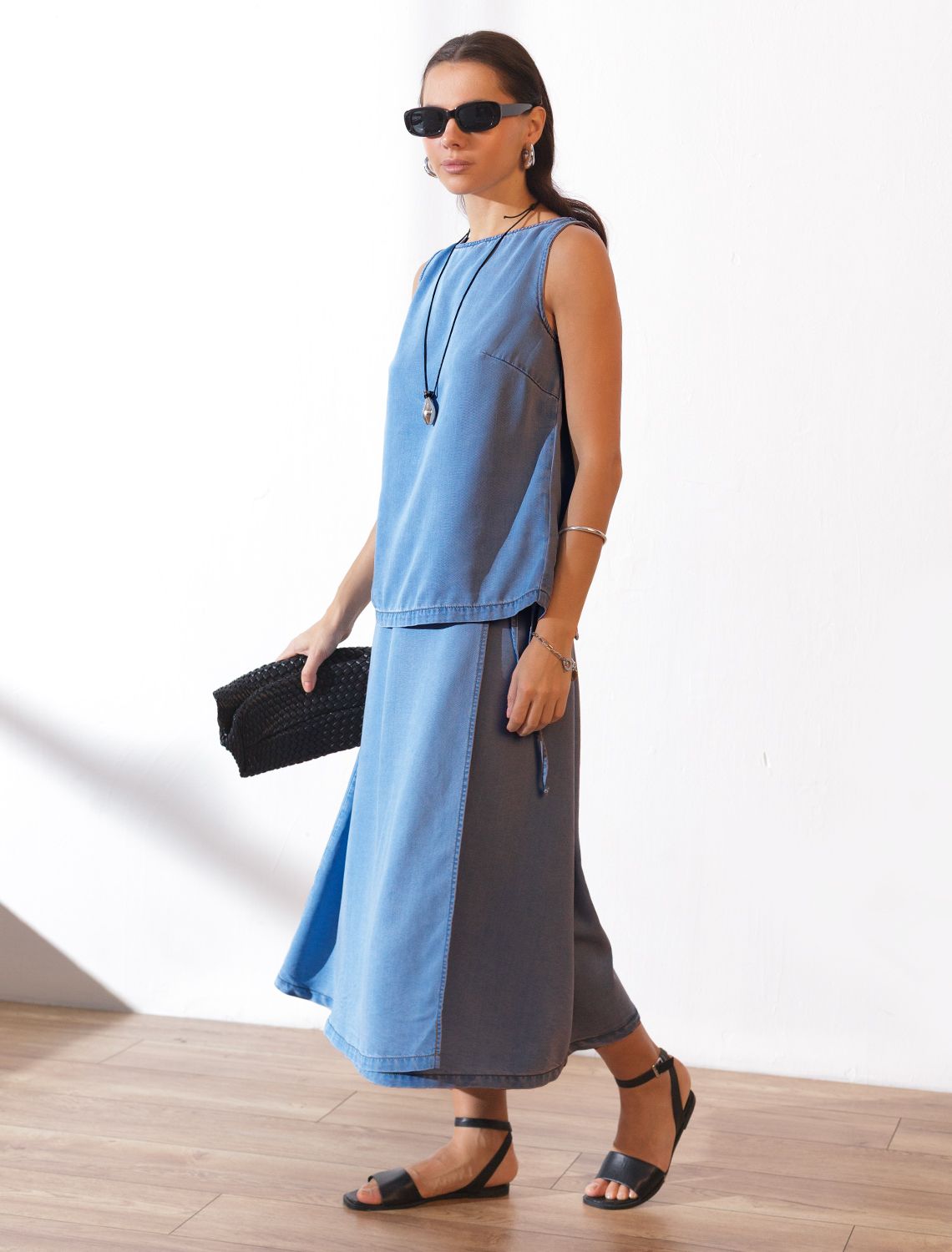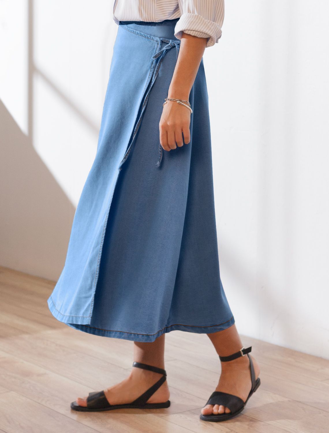 Юбка миди на запах А-силуэта из джинсового лиоцелла D56.127 светло-синий