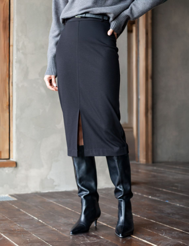 Юбка миди с двумя разрезами из поливискозы с эластаном D26.180 черный