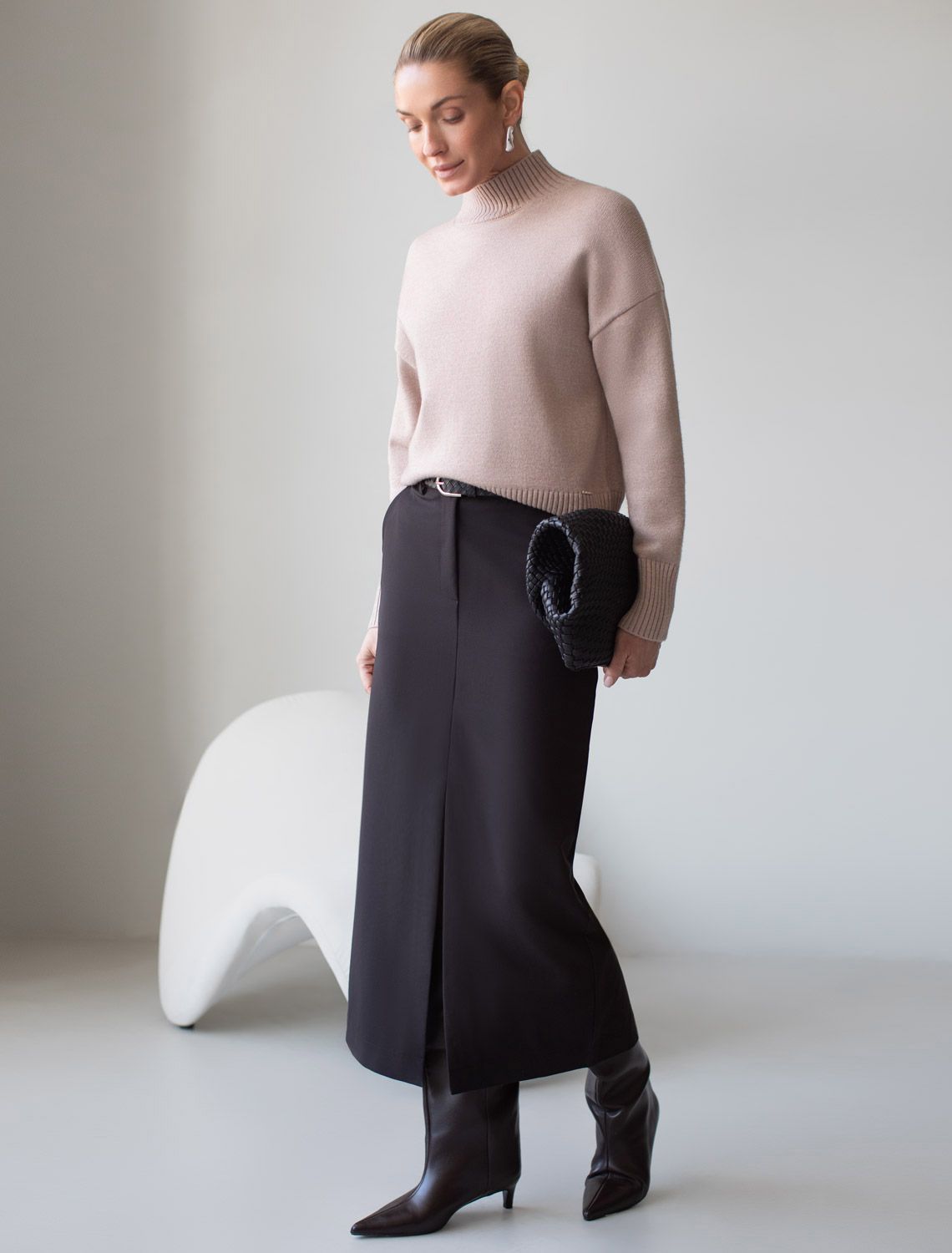 Юбка миди с двумя трендовыми разрезами выполнена из премиальной поливискозы с эластаном. Элегантная модель по фигуре хорошо впишется в строгий деловой образ, не нарушая выдержанного дресс-кода. Эластичный материал поддерживает оптимальный микроклимат, формоустойчивость и комфорт в течение всего дня.