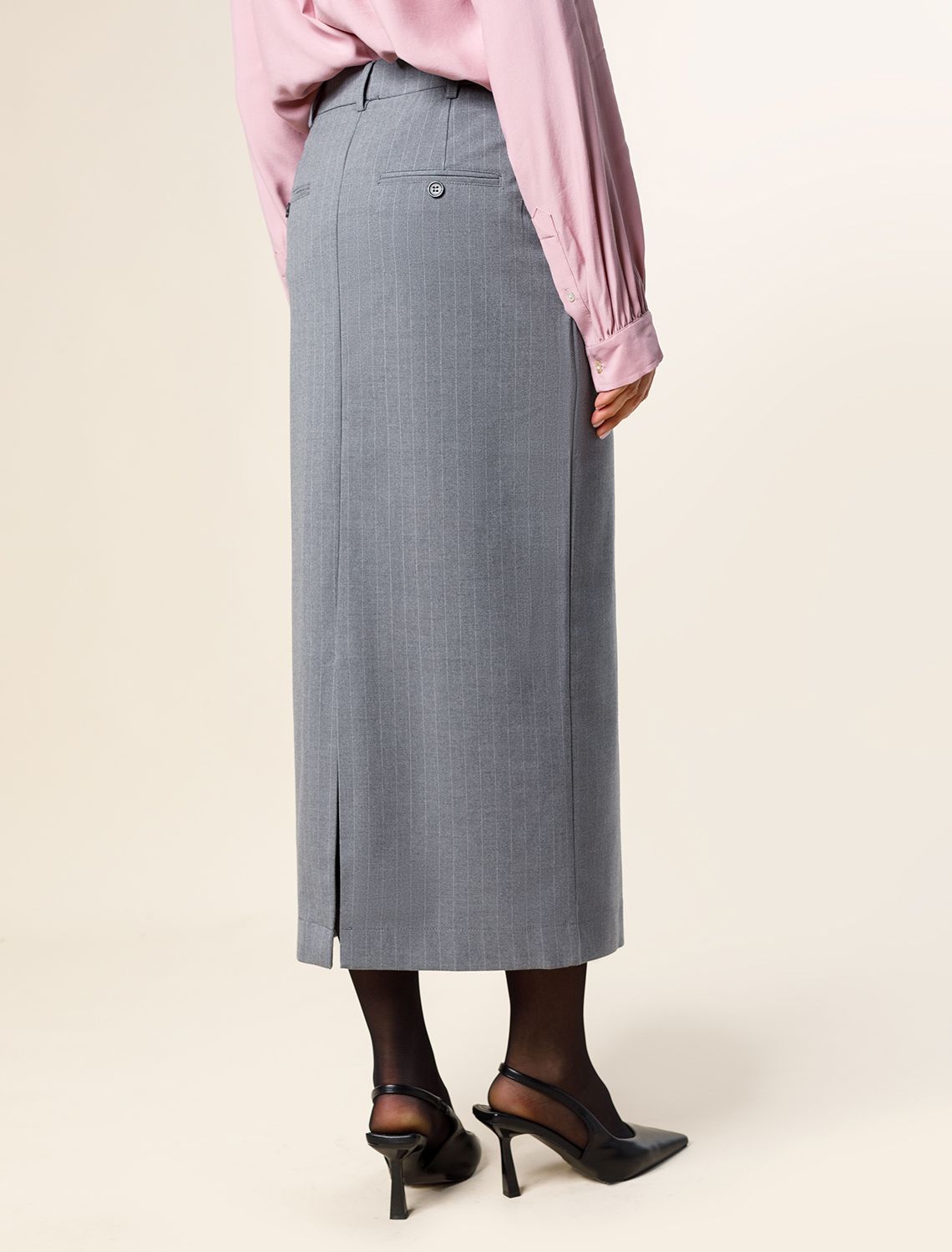 Юбка миди с двумя разрезами из премиальной поливискозы с эластаном D26.180 серый