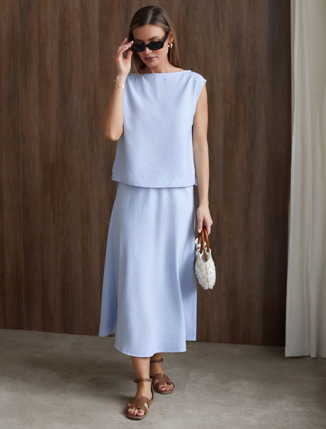 Юбка миди с разрезом скроенная по косой из плотного лиоцелла D26.208 голубой