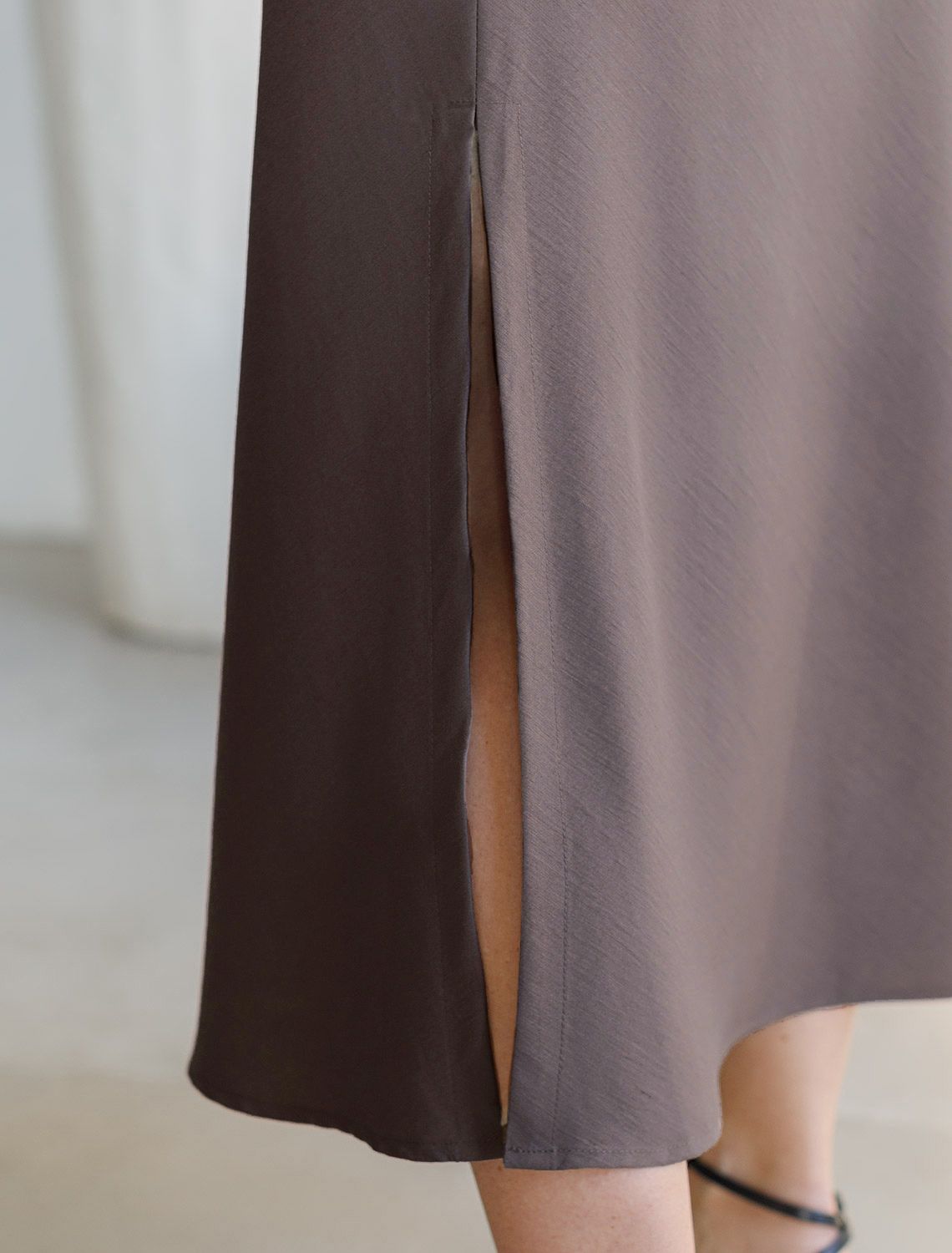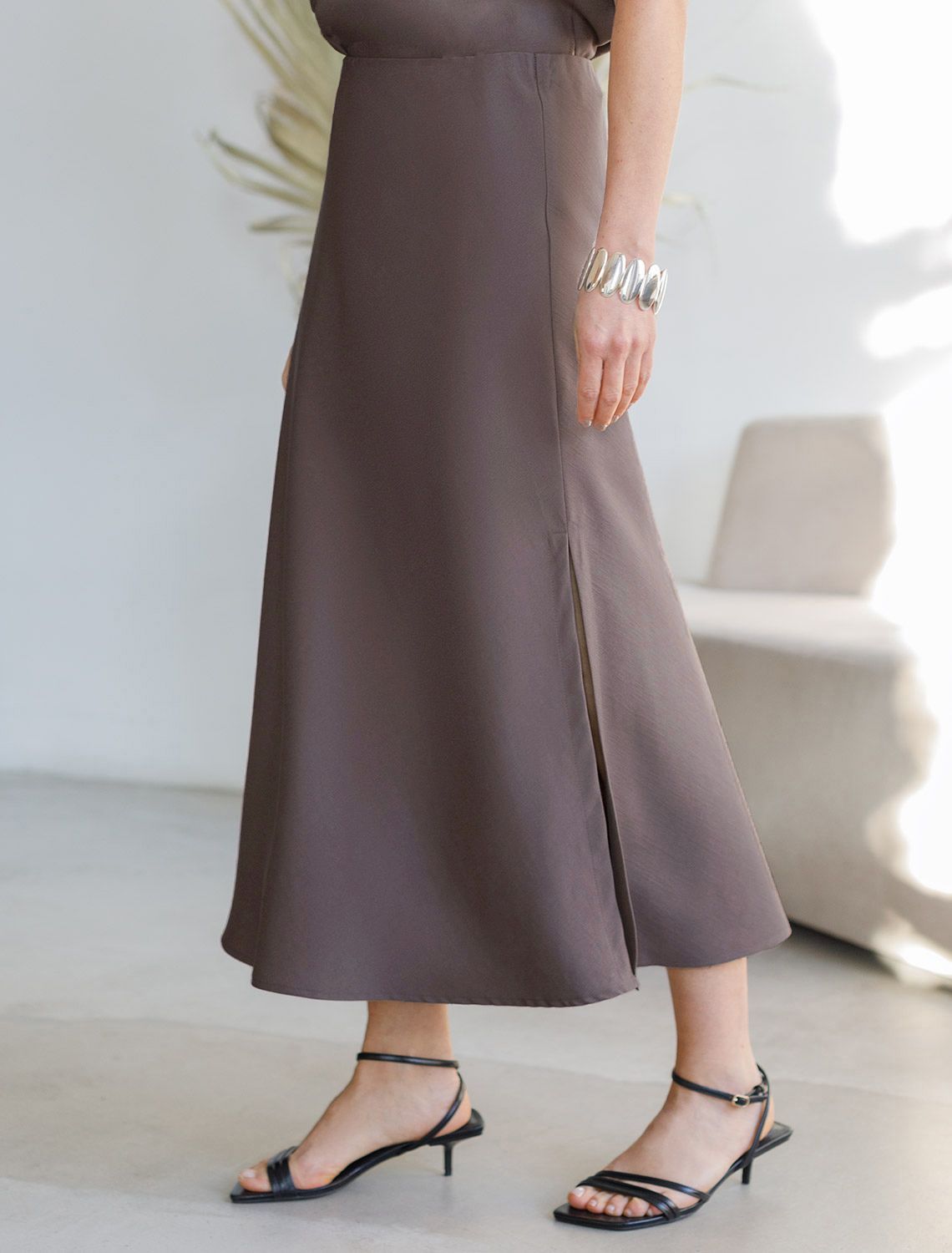Юбка кофейного цвета длины миди выполнена из плотного лиоцелла. Модель, скроенная по косой, мягко струится по телу и отлично драпируется. Лиоцелл это более дорогой и экологичный вариант вискозы, очень прочный и шелковистый. Ткань отличается от регулярной коллекции из лиоцелла - она содержит еще больше лиоцелла (92%), благодаря чему имеет более нежную шелковистую фактуру. Свободный крой юбки мягко скроет недостатки фигуры, акцентируя внимание на достоинствах и придавая силуэту привлекательность и женственность. Элегантная юбка на эластичном поясе гарантирует комфорт, а разрез с боку добавляет образу легкости и динамики. Расклешеная юбка подойдет на большие размеры, высокий и низкий рост. Юбка А силуэта будет базовым элементом для создания летних романтичных образов и стильных ансамблей на каждый день.