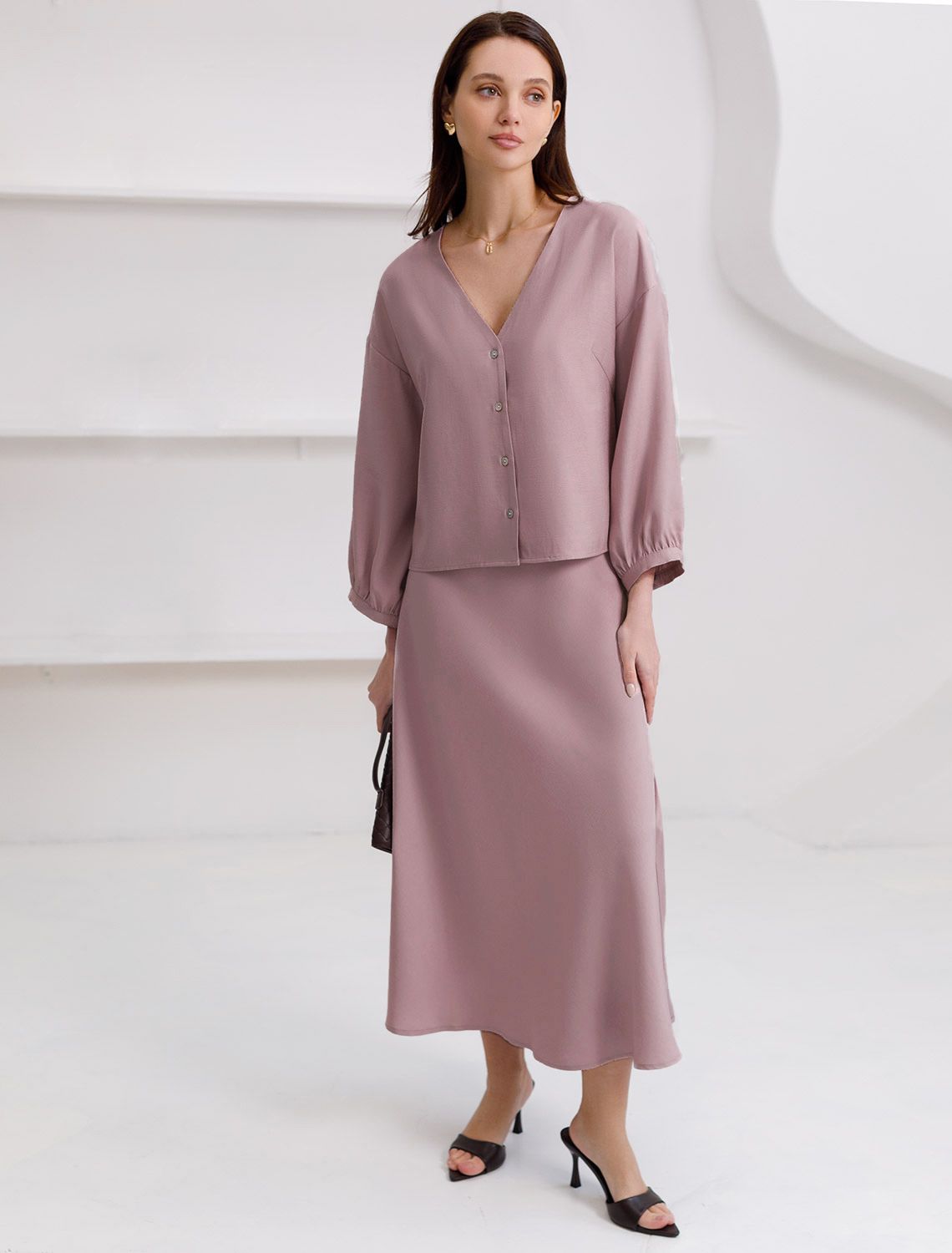 Юбка нежного зефирно-розового цвета длины миди выполнена из плотного лиоцелла. Модель, скроенная по косой, мягко струится по телу и отлично драпируется. Лиоцелл это более дорогой и экологичный вариант вискозы, очень прочный и шелковистый. Ткань отличается от регулярной коллекции из лиоцелла - она содержит еще больше лиоцелла (92%), благодаря чему имеет более нежную шелковистую фактуру. Свободный крой юбки мягко скроет недостатки фигуры, акцентируя внимание на достоинствах и придавая силуэту привлекательность и женственность. Элегантная юбка на эластичном поясе гарантирует комфорт, а разрез с боку добавляет образу легкости и динамики. Расклешеная юбка подойдет на большие размеры, высокий и низкий рост. Юбка А силуэта будет базовым элементом для создания летних романтичных образов и стильных ансамблей на каждый день.