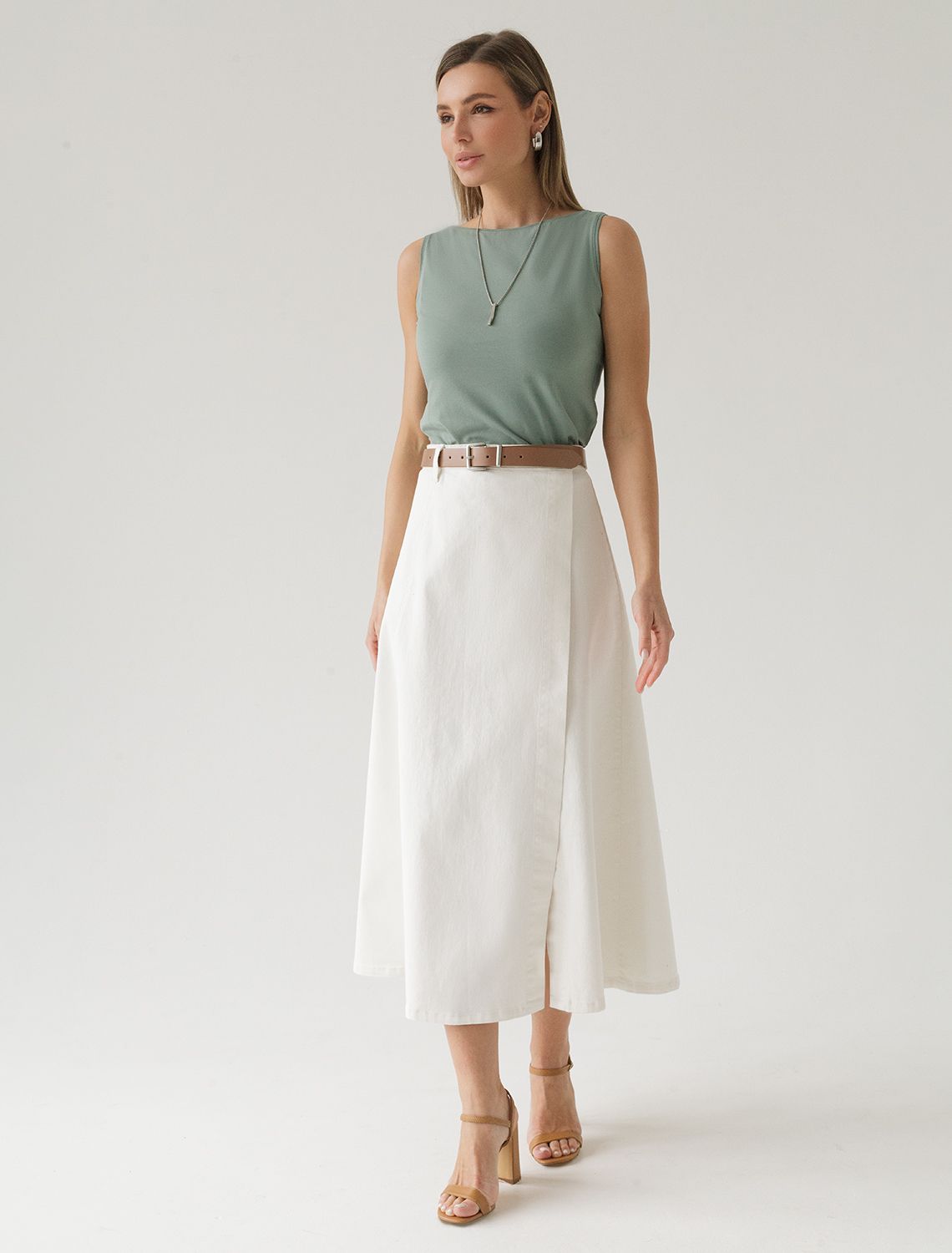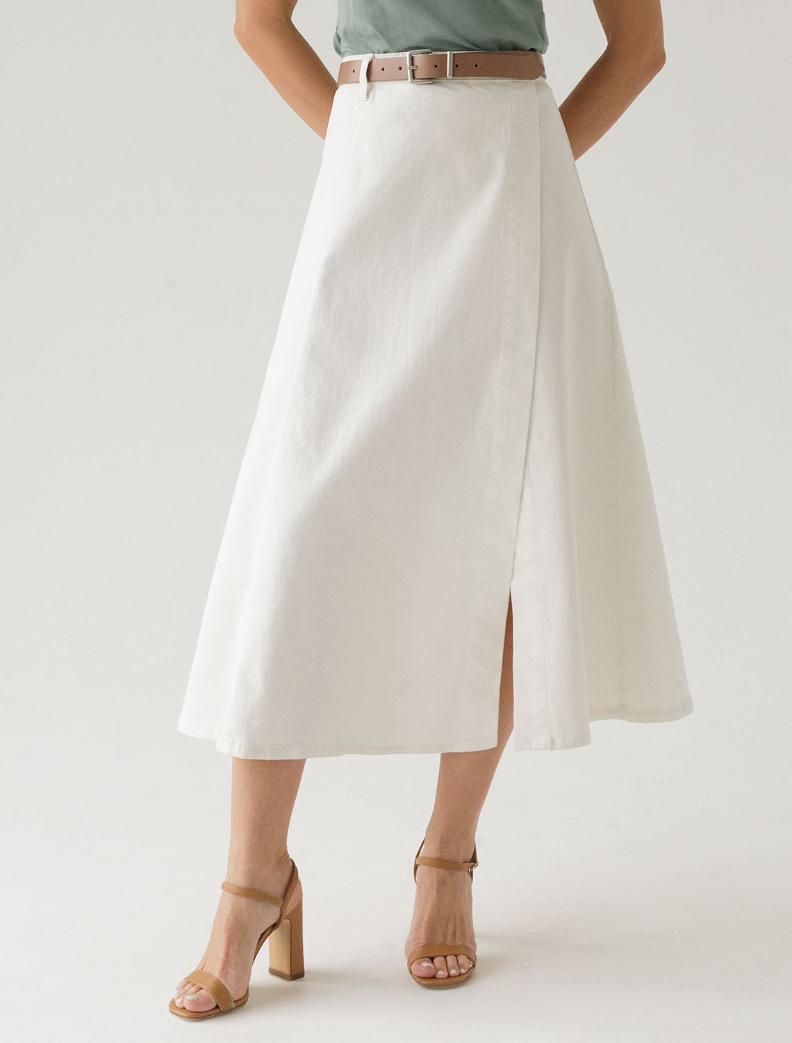 Юбка на запАх из эластичного денима D56.112 белый