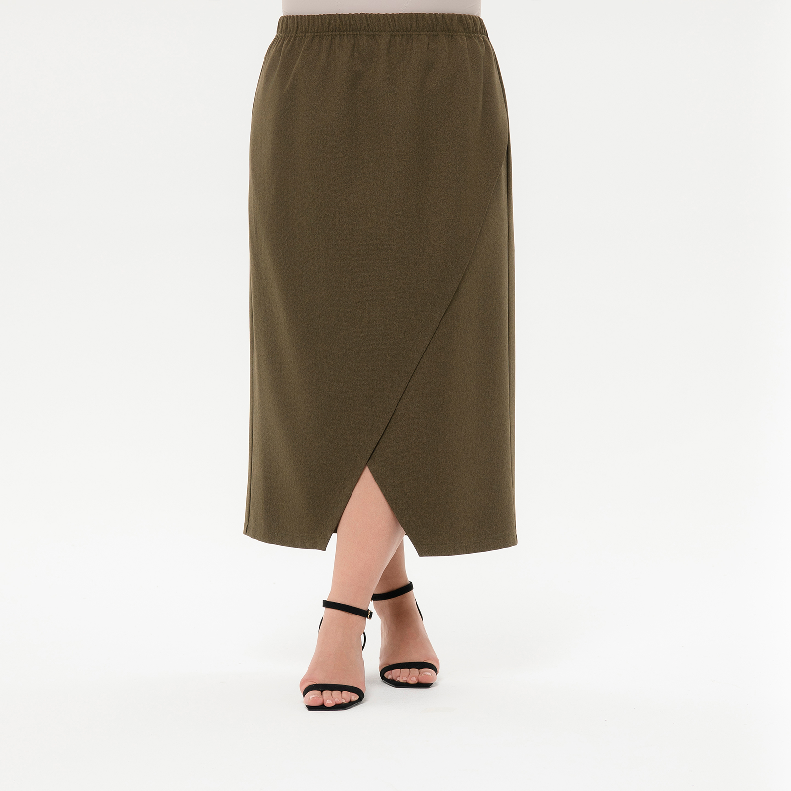 Юбка прямая, с запАхом, из костюмной ткани, цвет оливково-коричневый