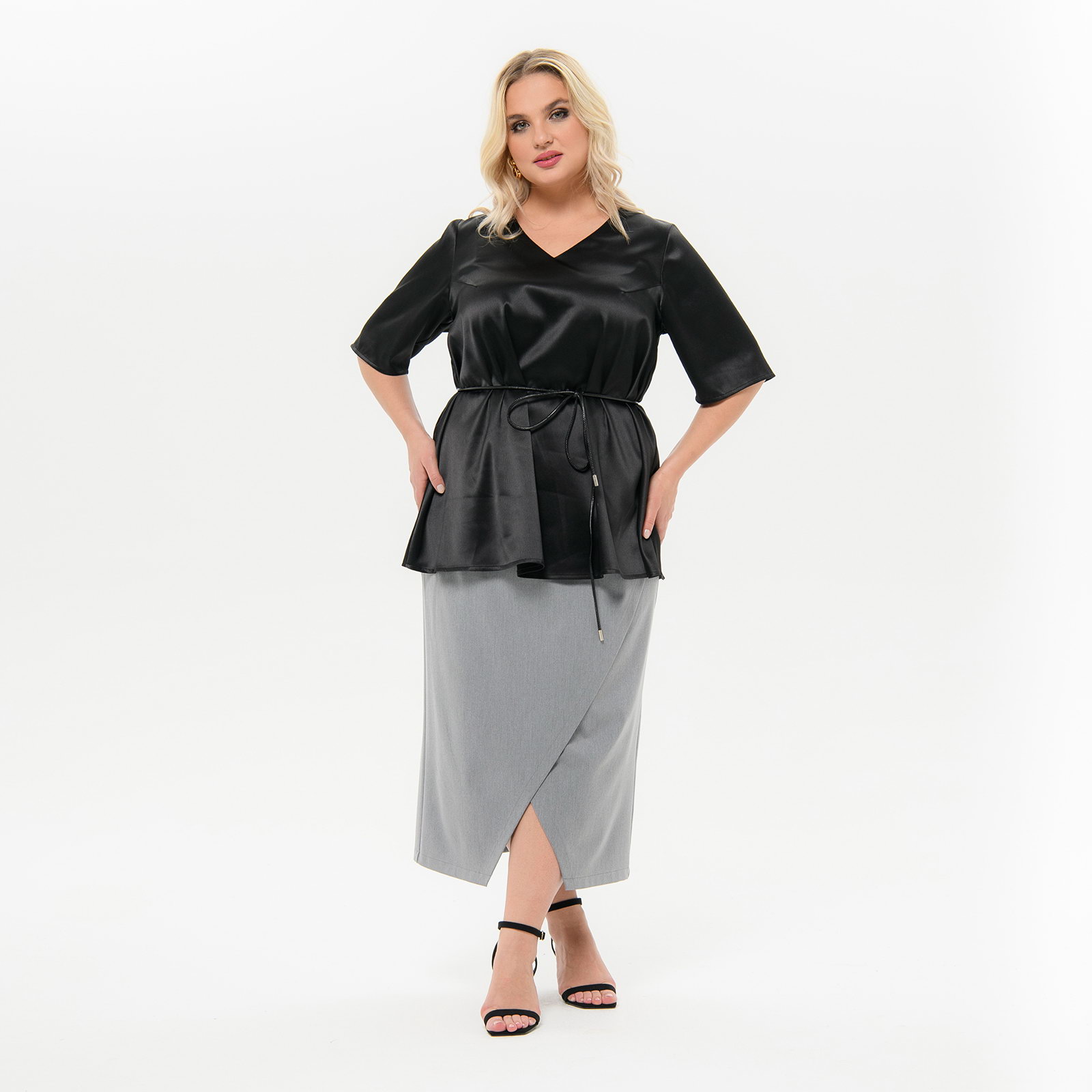 Юбка прямая, с запАхом, из костюмной ткани, цвет платиново-серый
