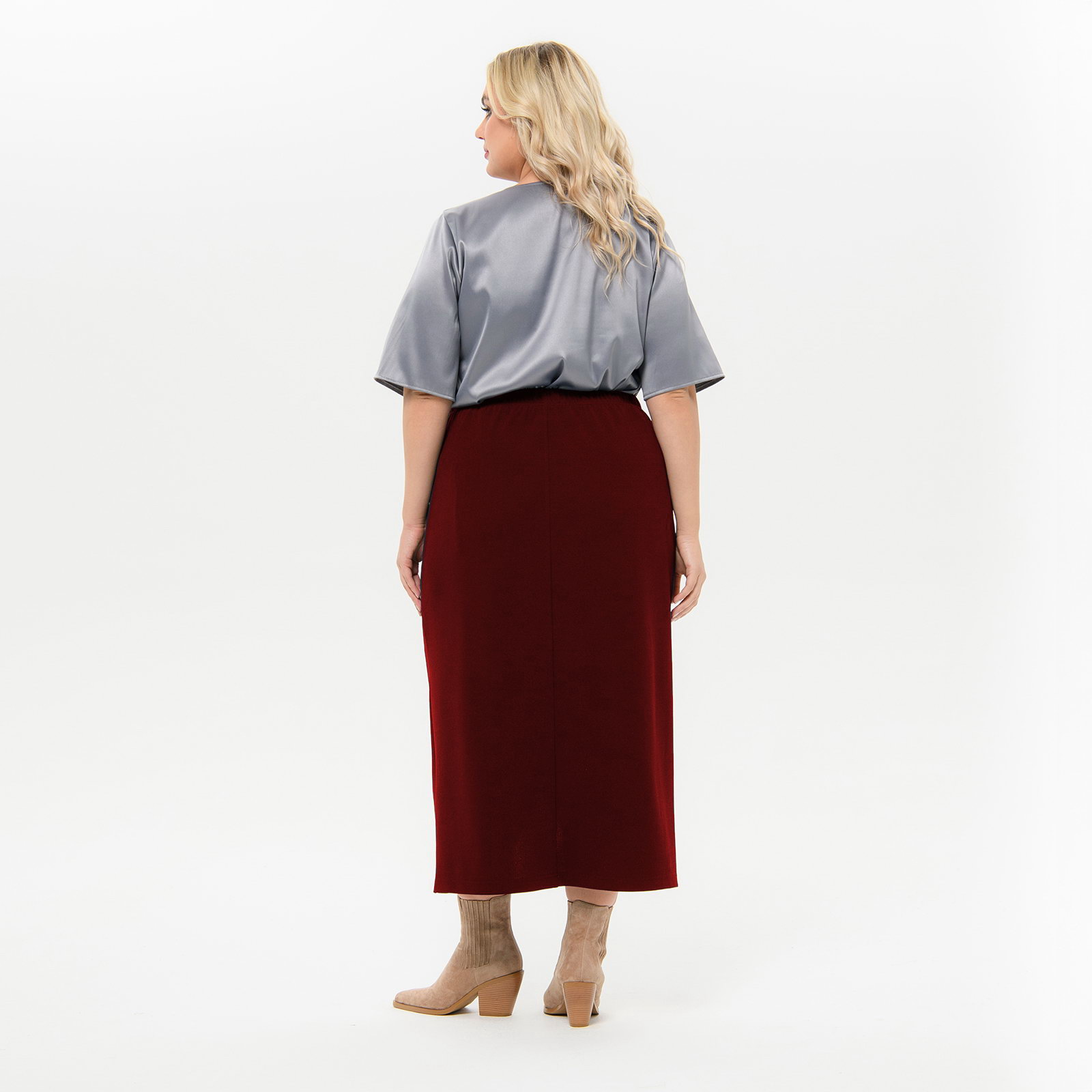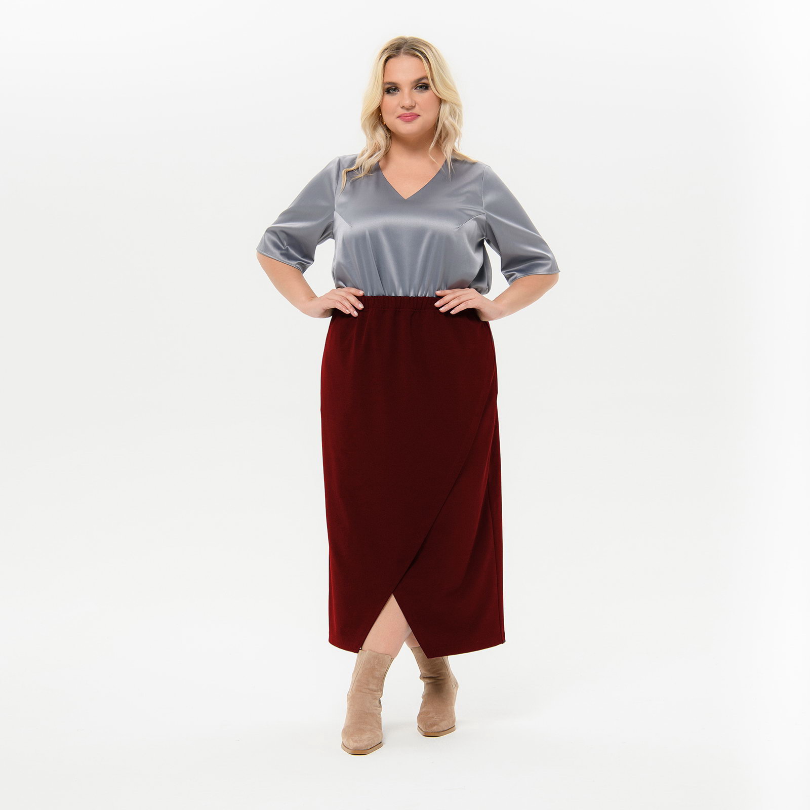Юбка прямая, с запАхом, из плательного крепа с эластаном, бордовая