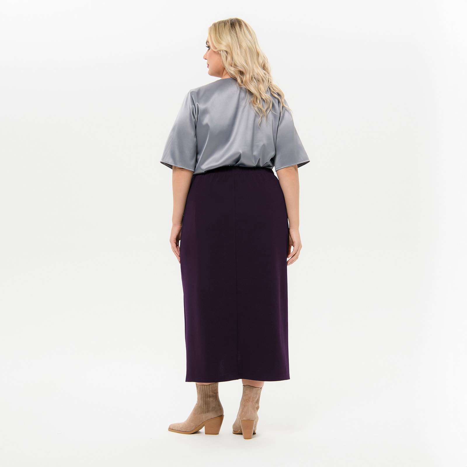 Юбка прямая, с запАхом, из плательного крепа с эластаном, бургунди