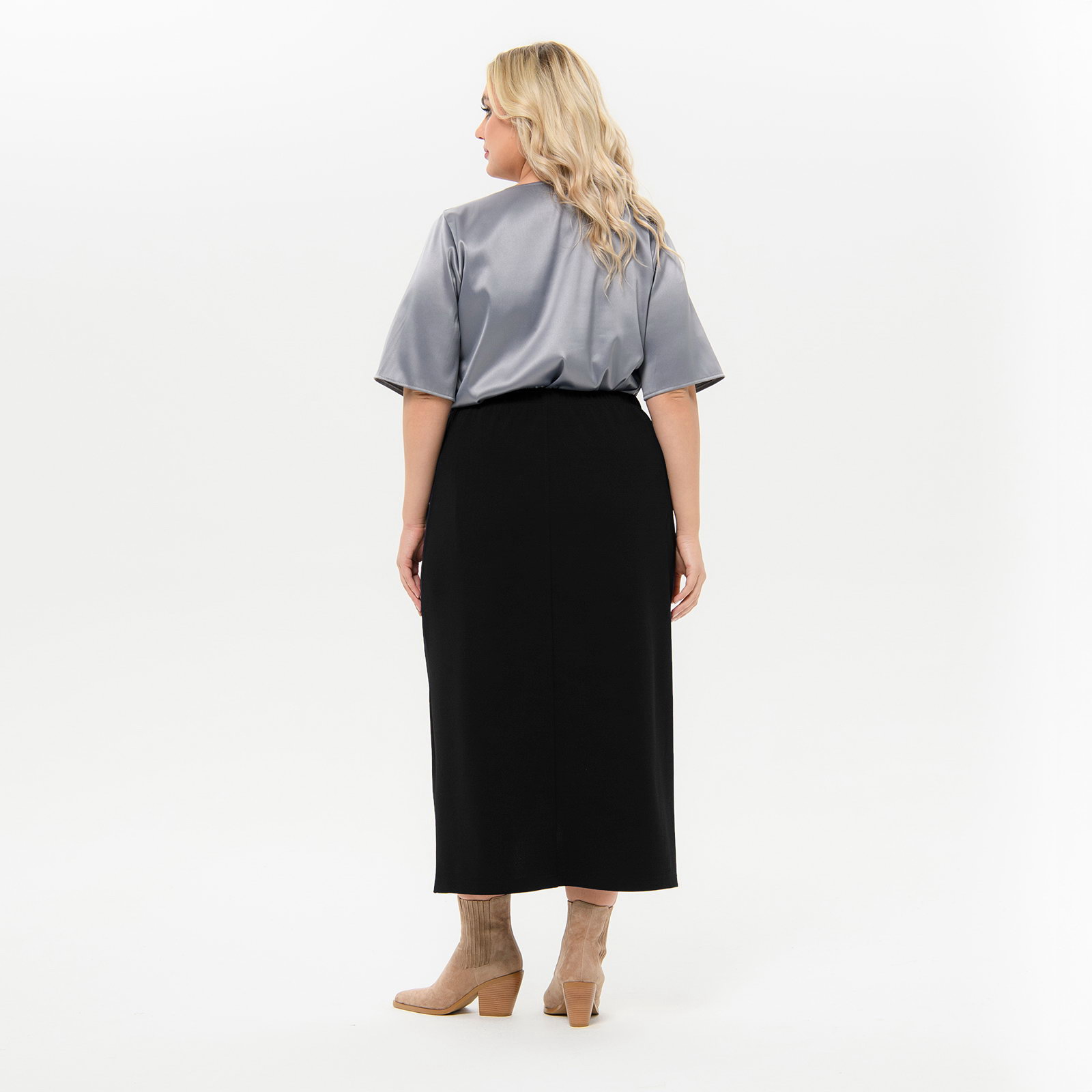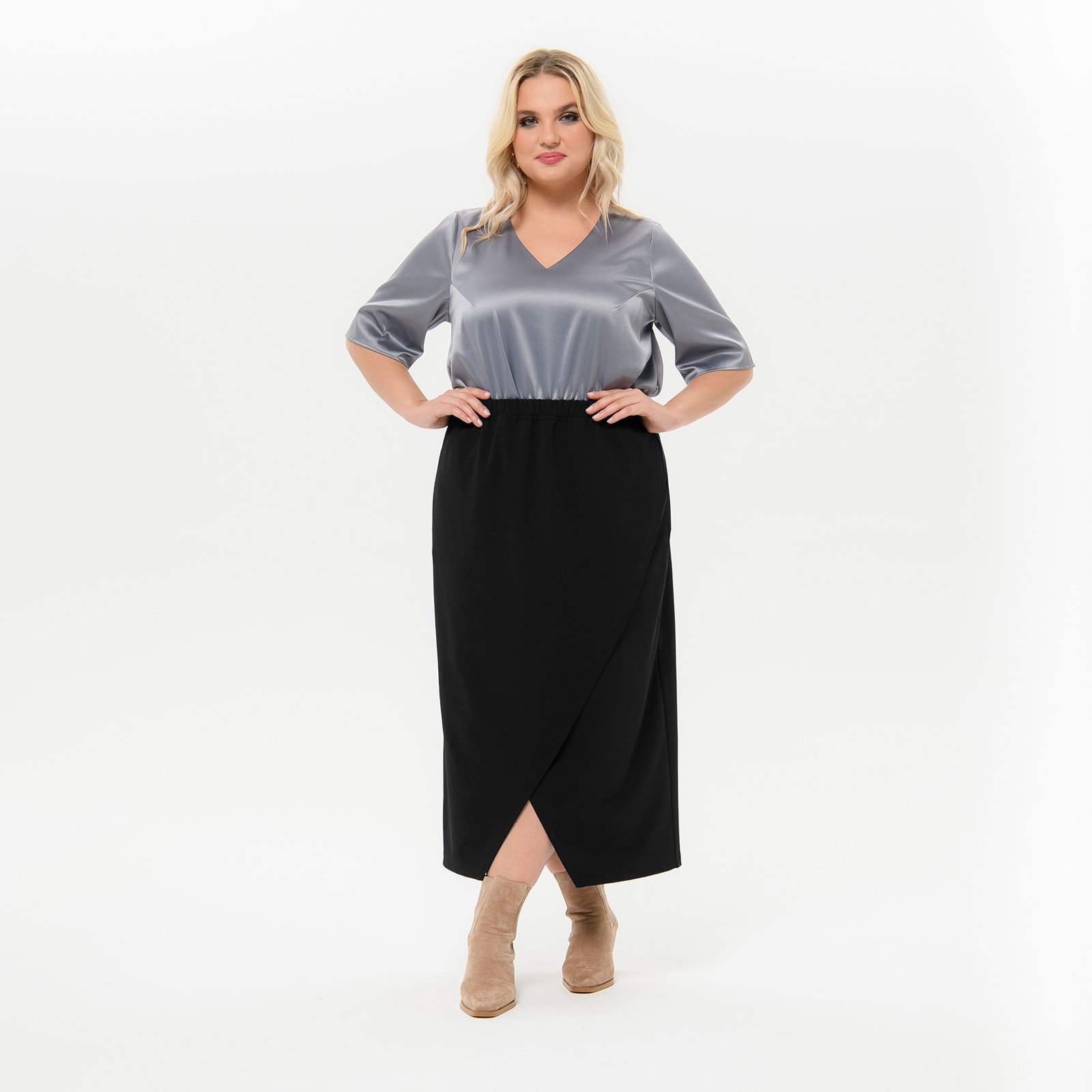 Юбка прямая, с запАхом, из плательного крепа с эластаном, черная