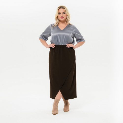 Юбка прямая, с запАхом, из плательного крепа с эластаном, "шоколад"