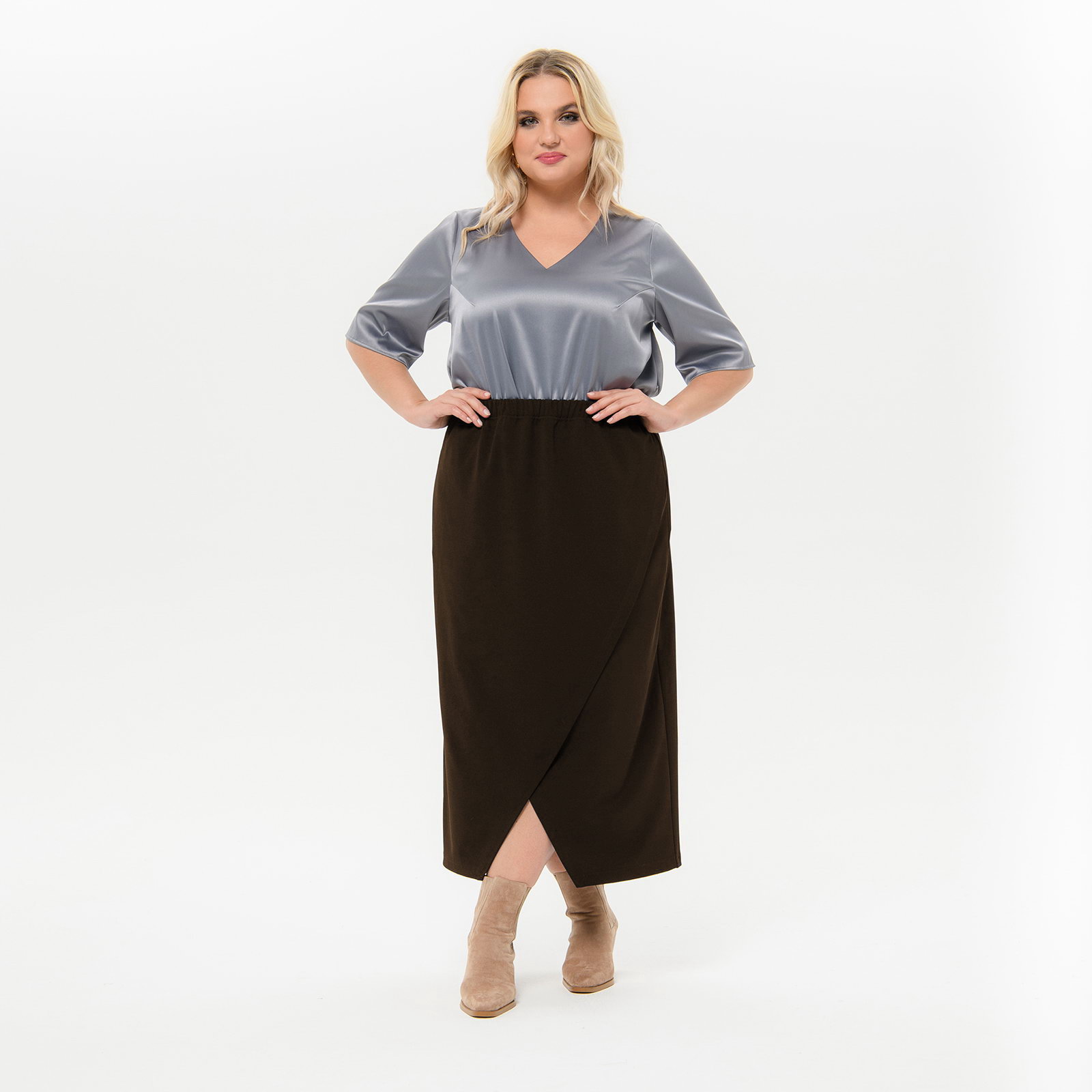 Юбка миди с запАхом из плательного крепа с эластаном. Верх на широкой резинке.