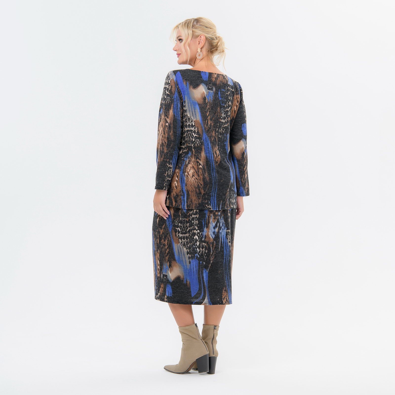 Юбка  выполнена из нового артикула джерси, имитирующего ангору.