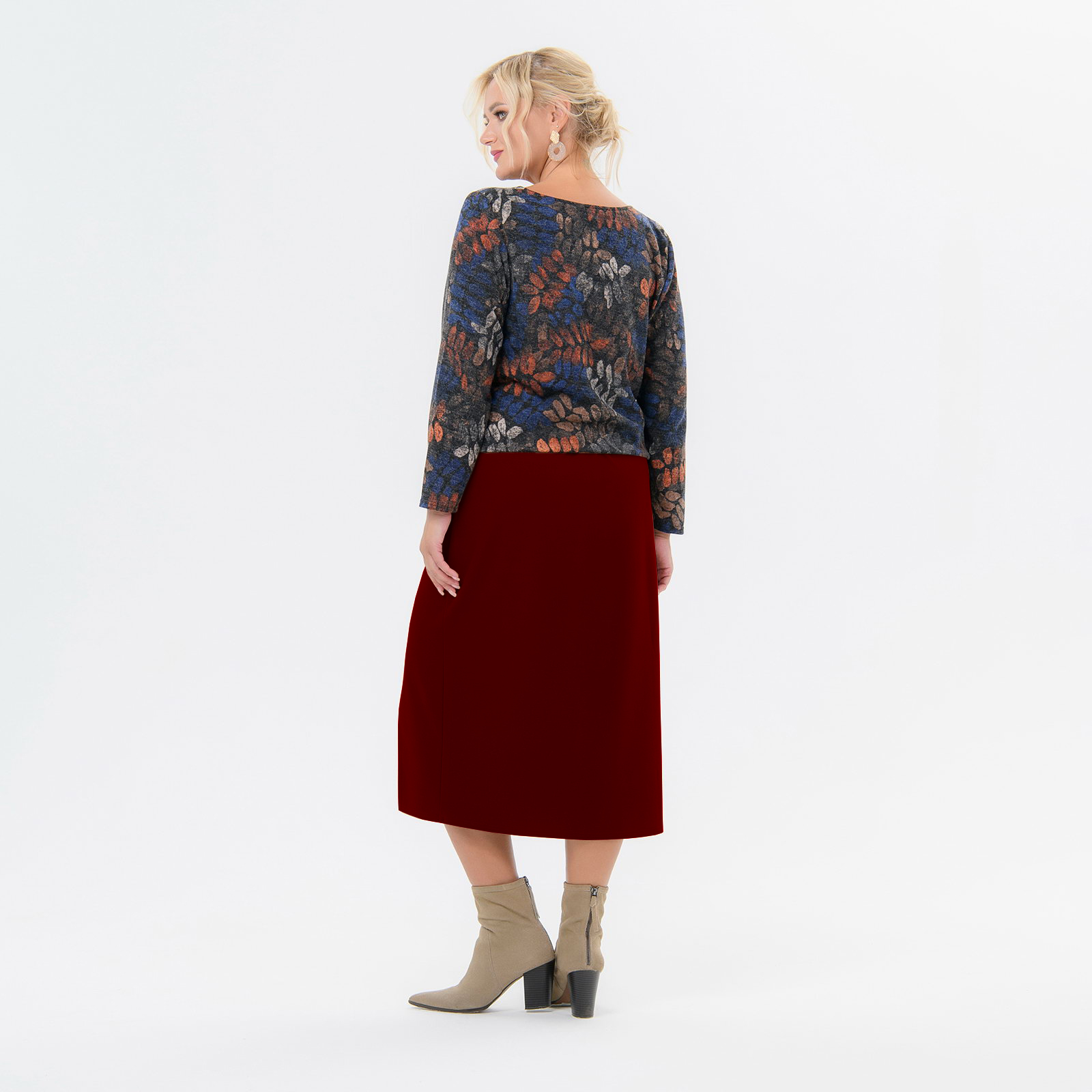 Юбка с разрезом из плотного крепа с эластаном бордового цвета