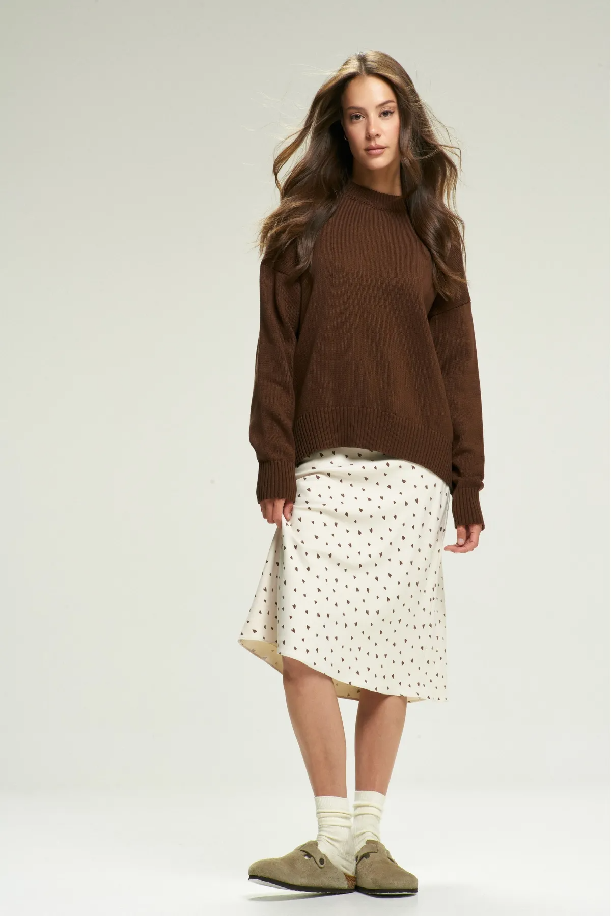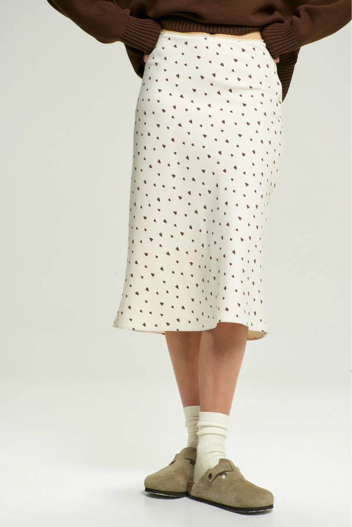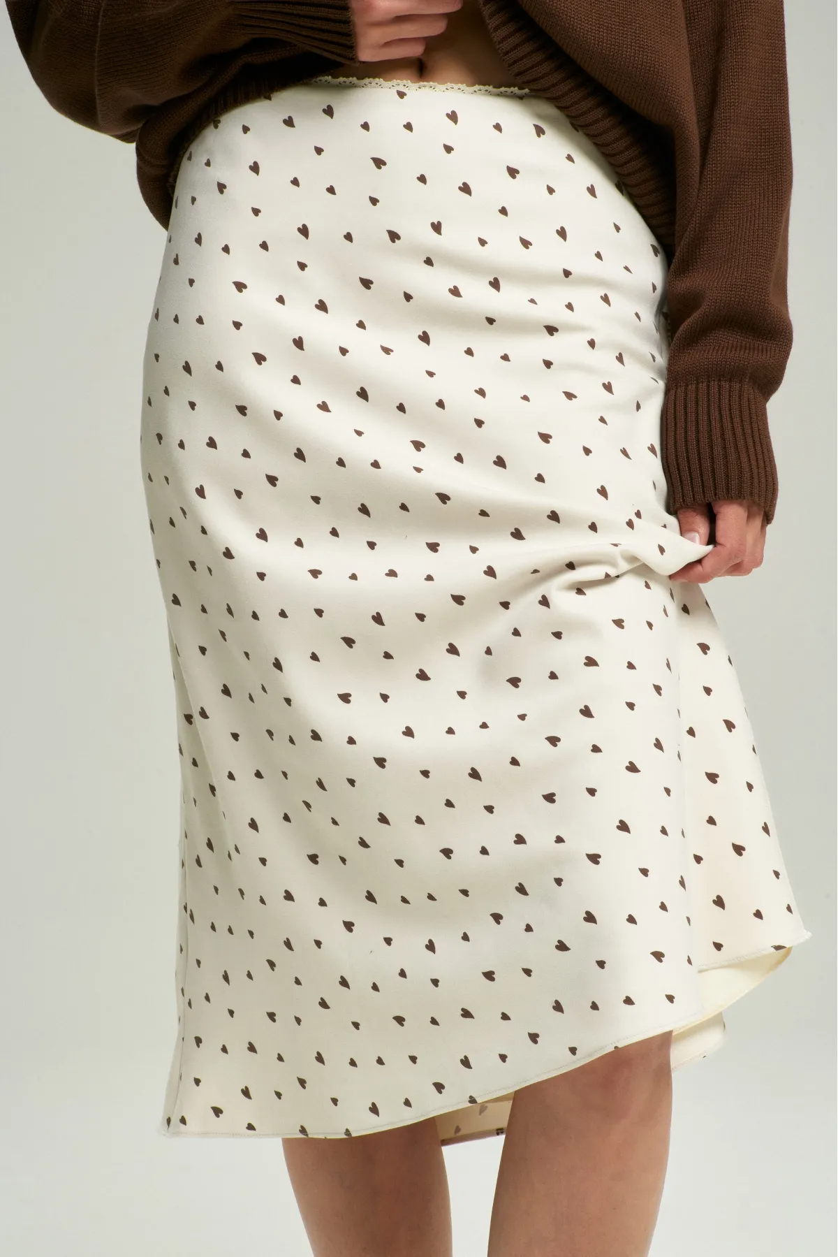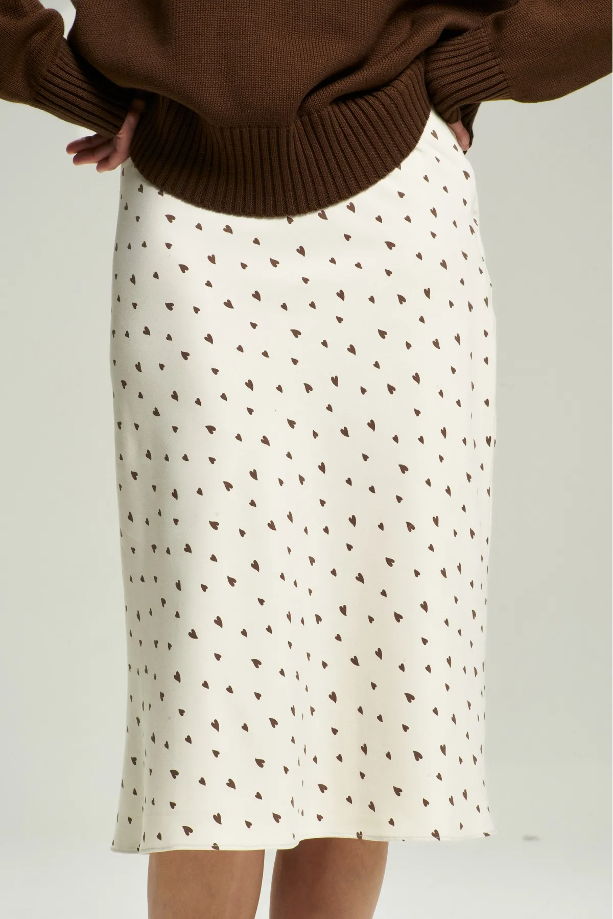 Это вариант для тех, кто ценит лёгкость в движении и утончённые детали. Модель средней длины, скроенная по косой, мягко обнимает бедра и плавно расширяется книзу, создавая элегантный силуэт. Декоративная тесьма подчёркивает принт и аккуратно акцентирует талию.